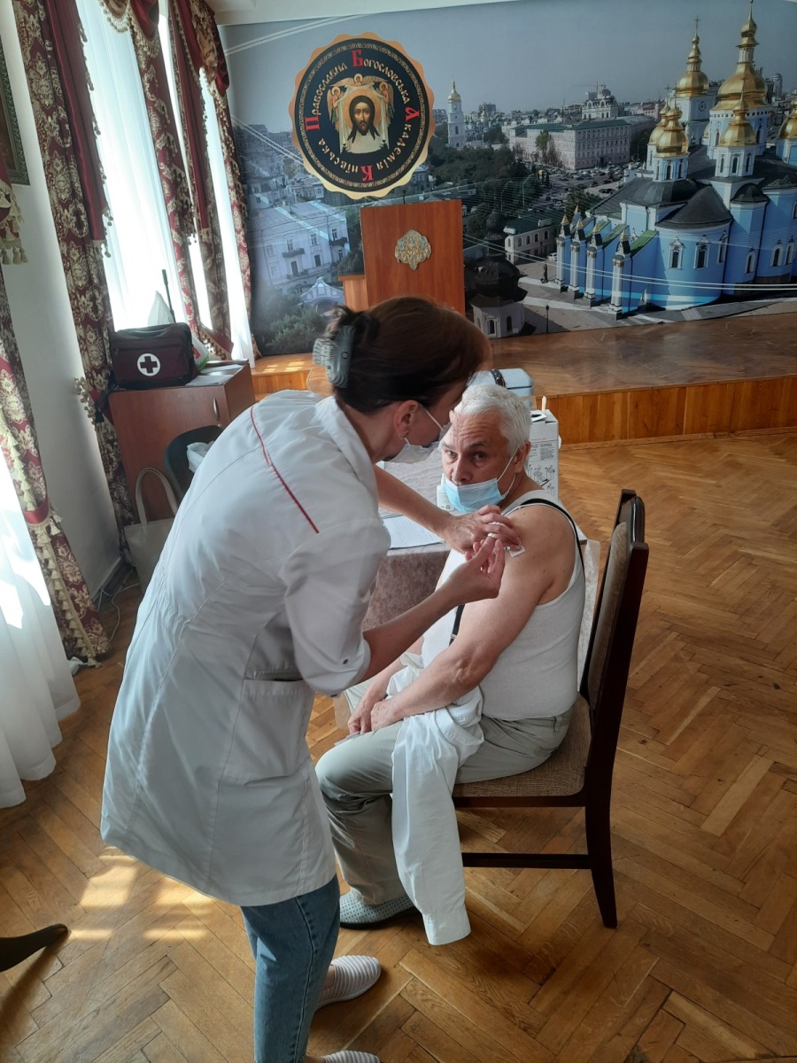 З благословення ректора, проф. прот. Олександра Трофимлюка в КПБА було проведено щеплення викладачів, співробітників академії, студентів від гострої респіраторної хвороби COVID-19, спричиненої коронавірусом SARS-CoV-2.
