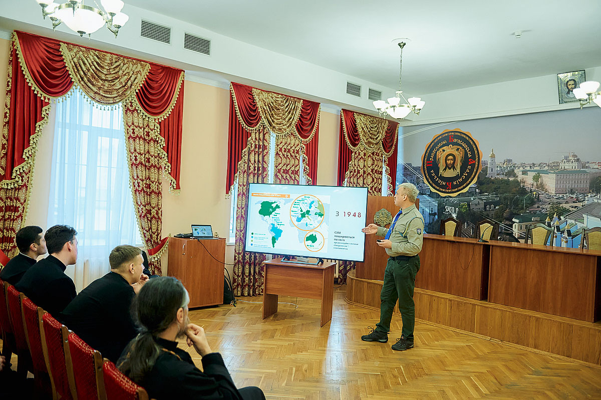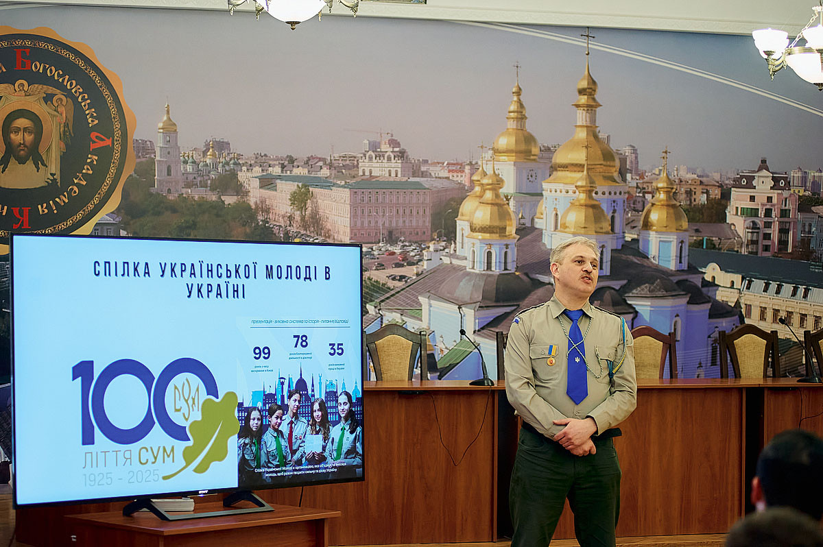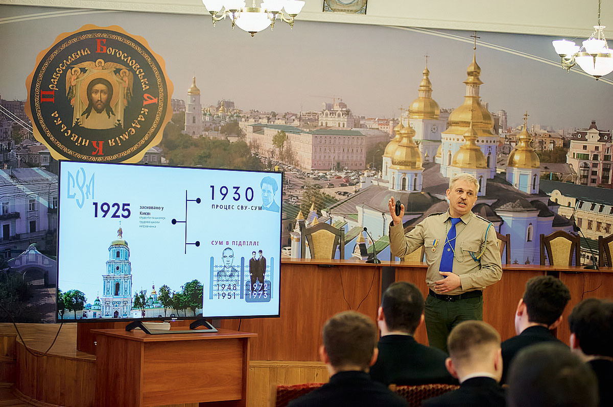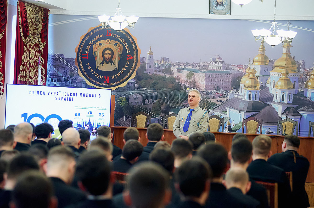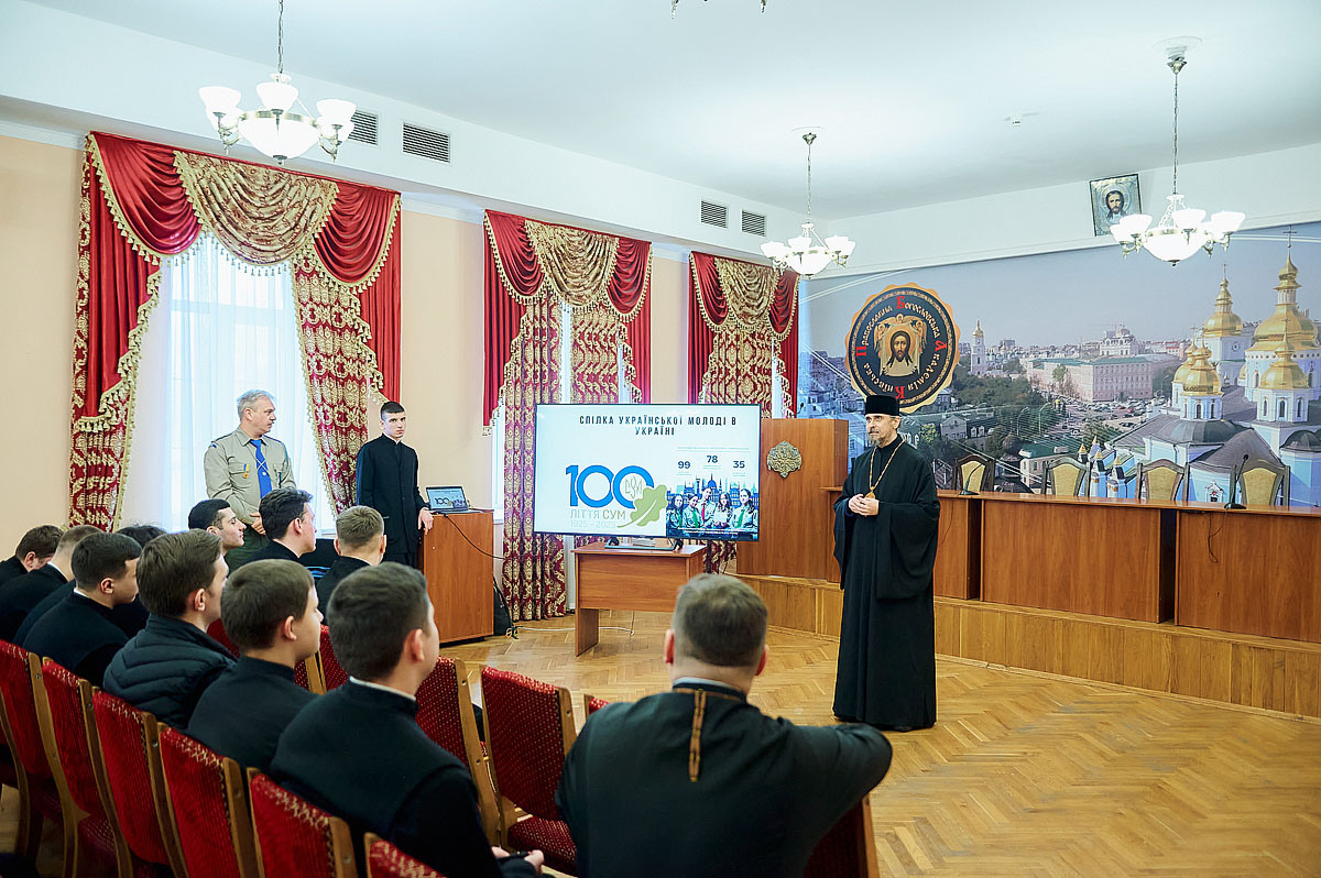 В рамках короткострокового спеціального курсу «Капеланство в молодіжних організаціях», який викладає кандидат наук із богослівʼя, голова Синодального управління взаємодії з молодіжно-патріотичними громадськими об’єднаннями Православної Церкви України митрополит Тернопільський і Кременецький Нестор, в актовій залі Київської православної богословської академії відбулася третя зустріч на тему: «Спілка Української Молоді в Україні», яку представляв Олександр Симирга – Голова Крайової управи Спілки Української Молоді в Україні.