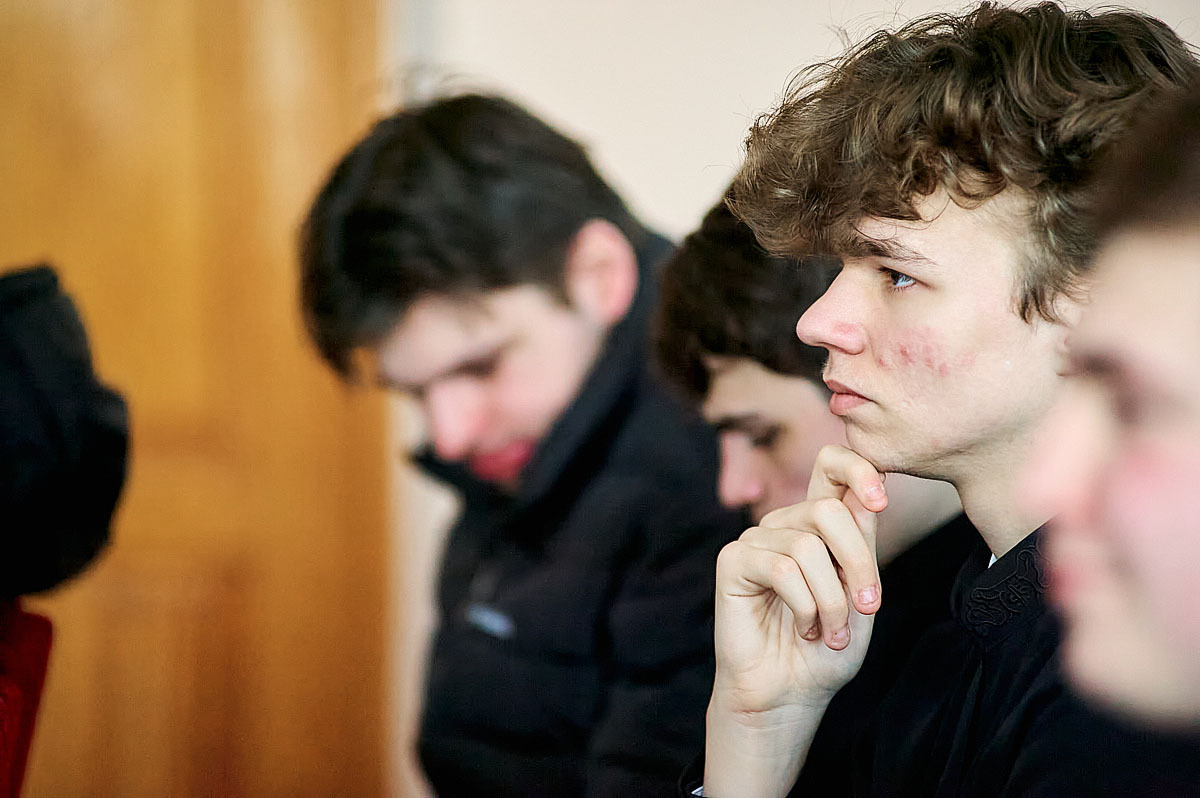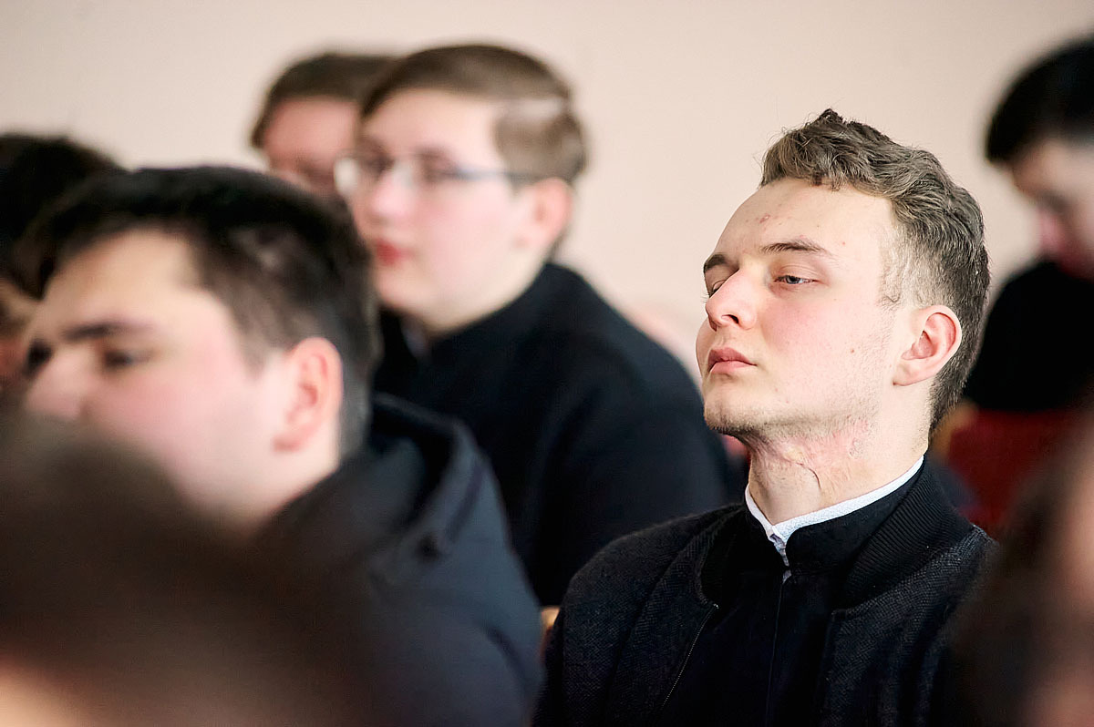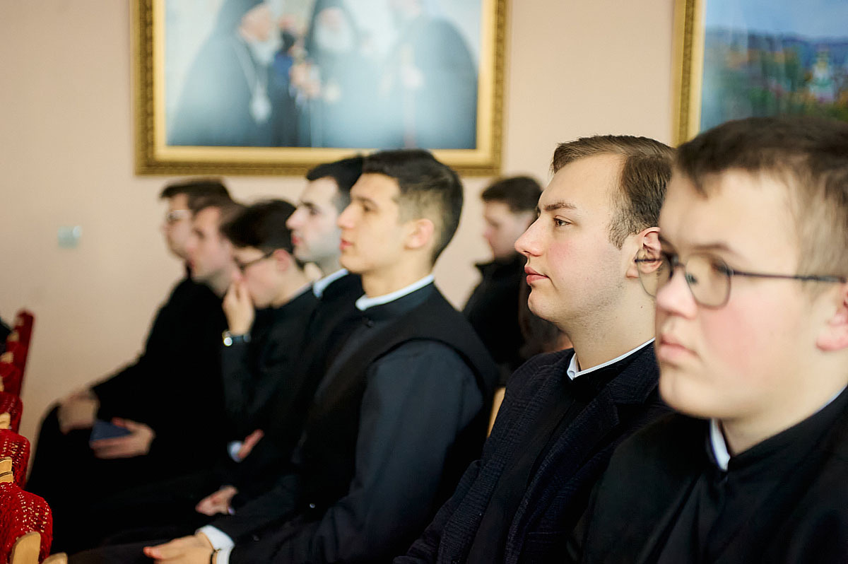 Ведучим заходу став Голова Національної спілки письменників України Михайло Сидоржевський. На початку зустрічі автор подарував отцю-ректору підбірку власних творів, що поповнить фонди академічної бібліотеки.