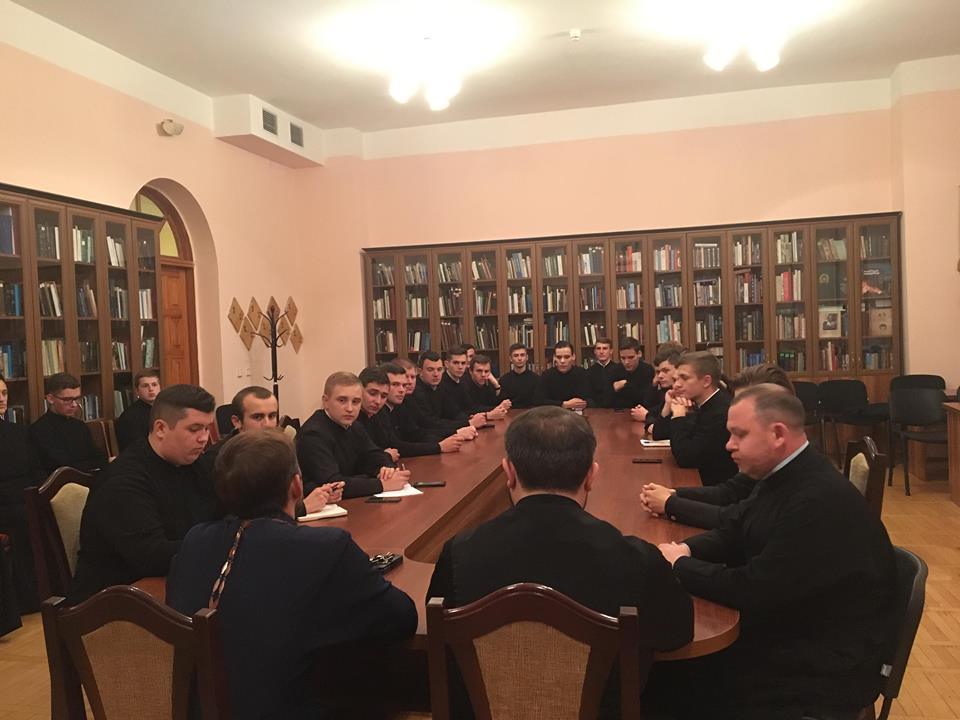 15 жовтня відбулось засідання Наукового студентського товариства ім. митрополита Даниїла (Чокалюка). Захід традиційно розпочався із молитви. На початку роботи засідання до усіх присутніх звернувся голова товариста аспірант 3-го року навчання КПБА Євфимій Фурсенко, який ознайомив із темою засідання. Після чого учасники заслухали доповідь куратора товариства протоієрея Павла Мельника. Тема доповіді стосувалась взаємовідносин молодих людей до шлюбу, зокрема його православного розуміння в контексті святоотцівського вчення. Доповідь викликала жваву дискусію. У роботі засідання також взяв участь старший інспектор КПБА, протоієрей Петро Бойко, який наприкінці зустрічі звернувся до учасників товариства із вітальним словом, також висловив свої побажання щодо роботи товариства і закликав голову і учасників товариства до співпраці з метою покращення внутрішнього життя Академії і наукового-виховного процесу. Після вітального слова учасники обговорили із отцем Петром деякі організаційні питання і висловили свої побажання щодо вдосконалення внутрішнього статуту Академії. Завершився захід також молитвою.
