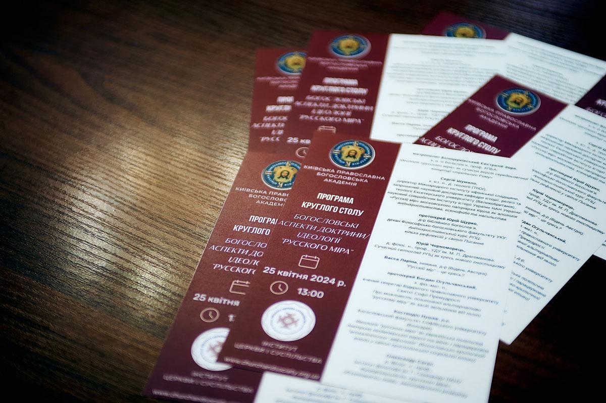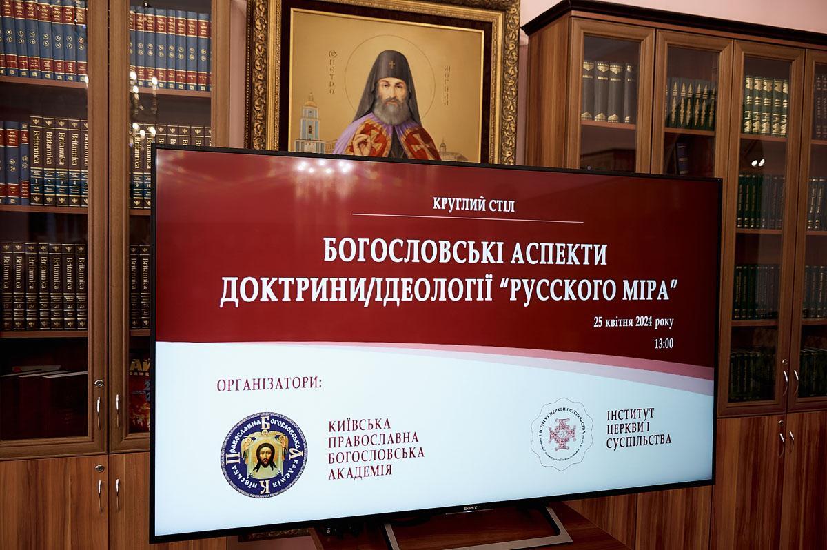 У четвер, 25 квітня 2024 року, в залі засідань ученої ради Київської православної богословської академії відбувся круглий стіл «Богословські аспекти доктрини / ідеології “русского міра”», в якому взяли участь експерти з України, Болгарії, Австрії, Німеччини, Великобританії та Чехії, організований спільно з Інститутом Церкви і суспільства КПБА.
