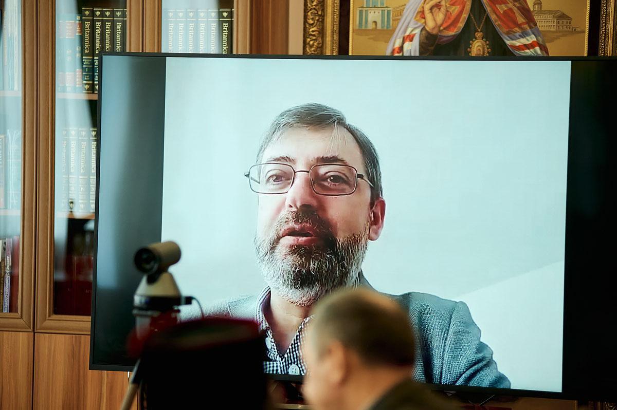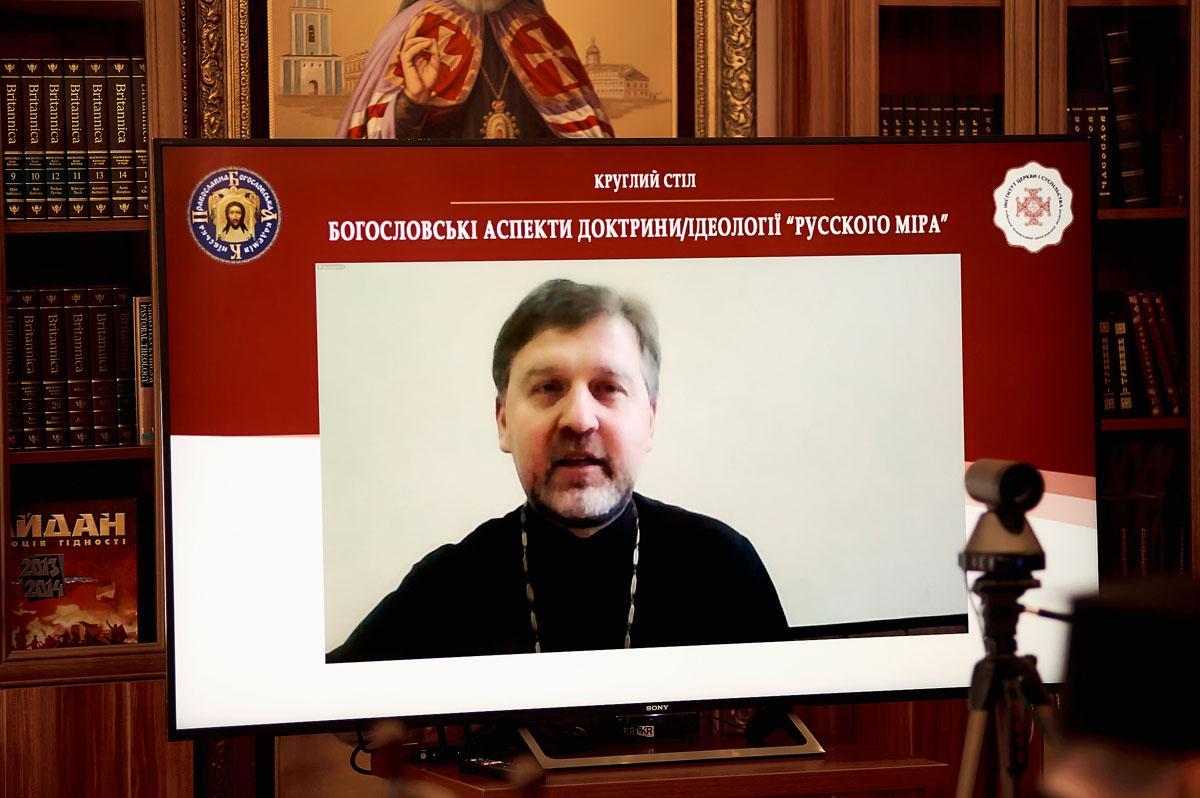 Критику ідеології, яку пропагує РПЦ, з позицій біблійного богослов’я представив декан Філософсько-богословського факультету Українського католицького університету протоієрей Юрій Щурко.