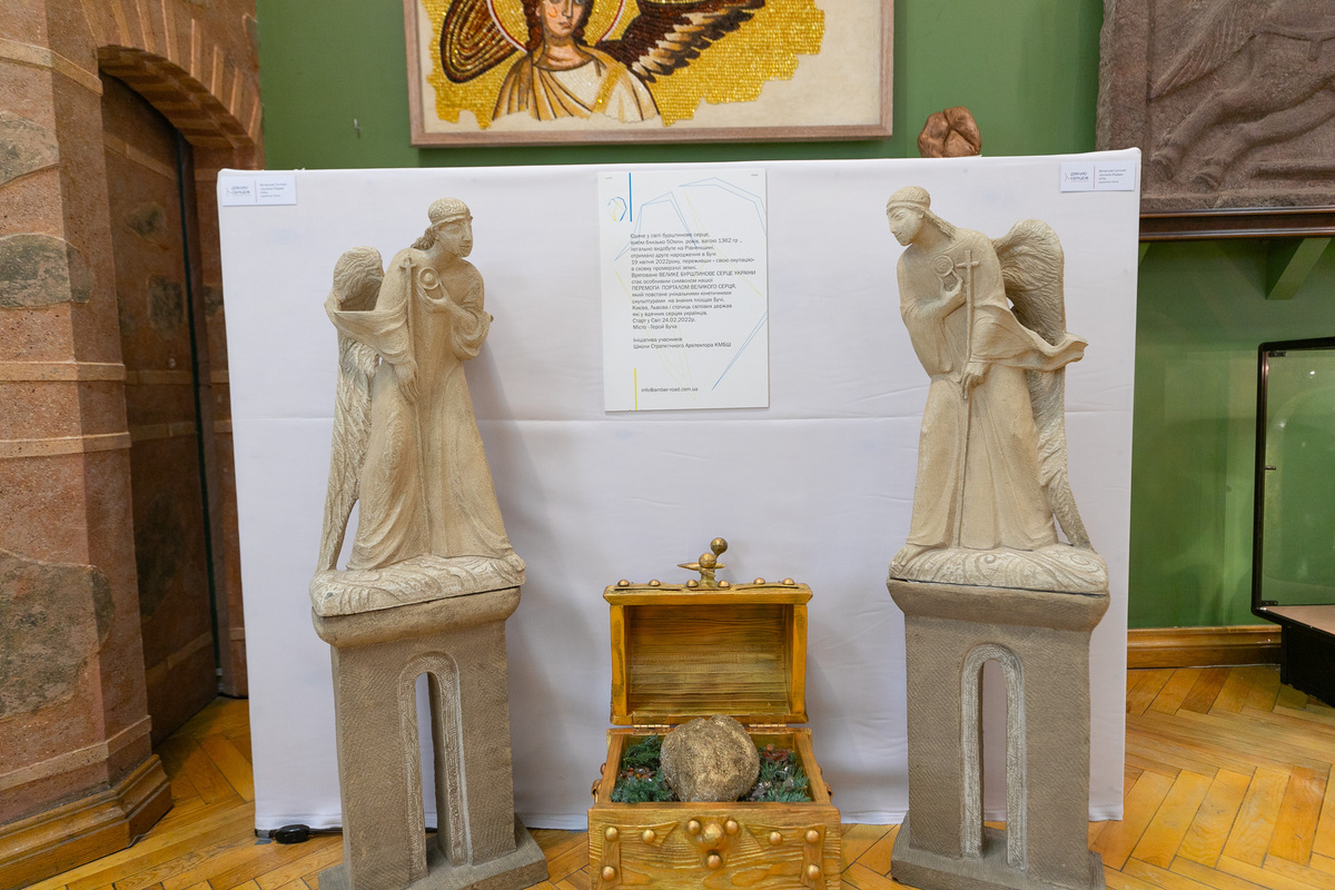 «Ця виставка є символом нашої незламної надії та віри в краще майбутнє, оскільки головний експонат виставки – Велике Бурштинове Серце України, унікальний нерукотворний скарб вагою 1362 грами. Самородок, що має форму кардіоїди, видобули у 2010 році на родовищі «Володимирець Східний» у Рівненській області. Його історія набрала особливих сенсів після 24 лютого 2022 року, коли бурштинове серце закопали в землю під час окупації Бучі. А після деокупації міста серце стало символом нової надії», – зазначила на відкритті заступниця голови КМДА Ганна Старостенко.