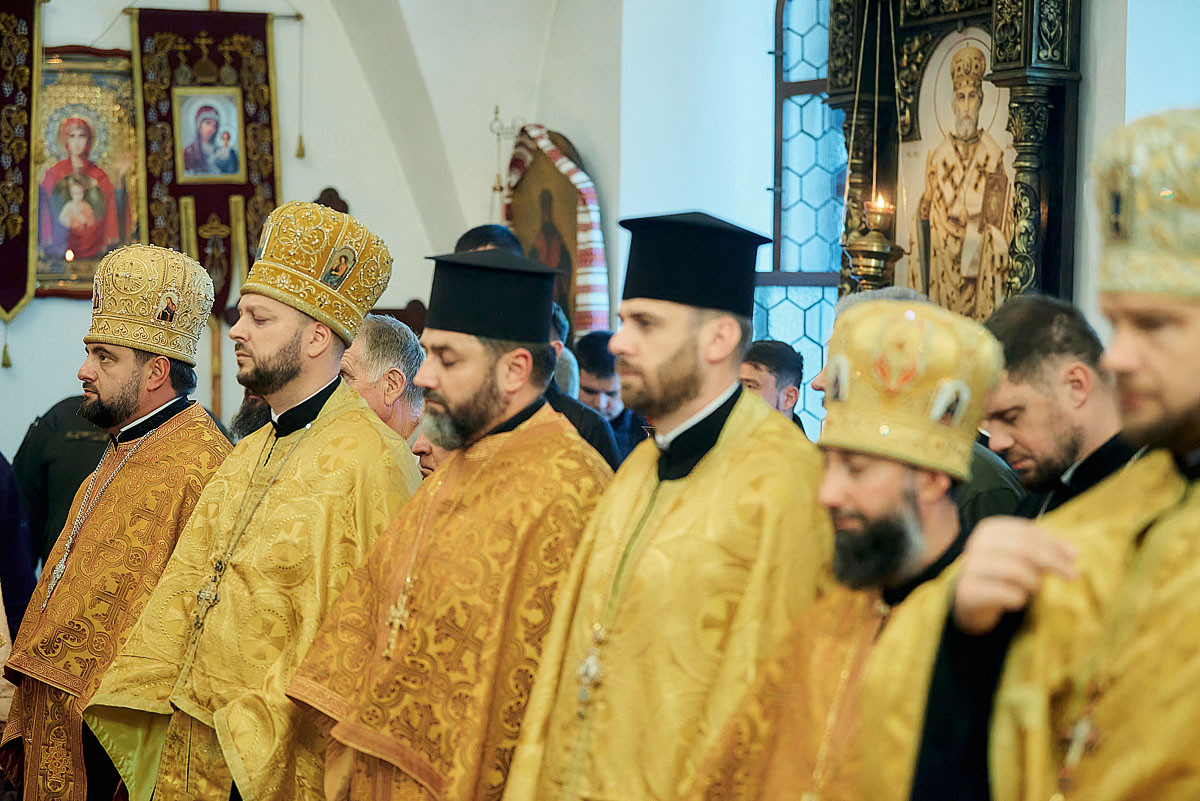 Його Високопреосвященству співслужили єпископ Чернівецький і Буковинський Феогност, вікарій Київської Митрополії єпископ Висильківський Єфрем, ректор Київської православної богословської академії протоієрей Ярослав Романчук, представники духовних навчальних закладів Православної Церкви України, духовенство академічного храму, братія монастиря у священному сані та запрошене духовенство.