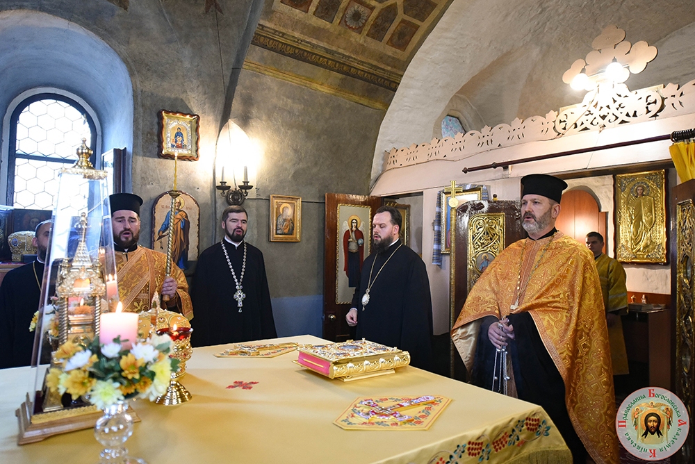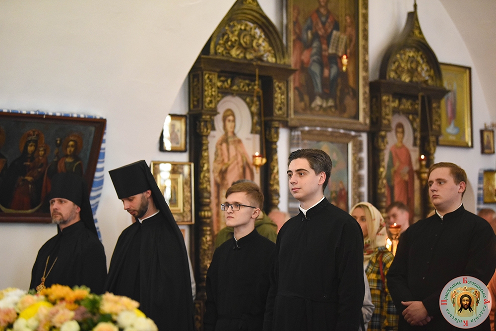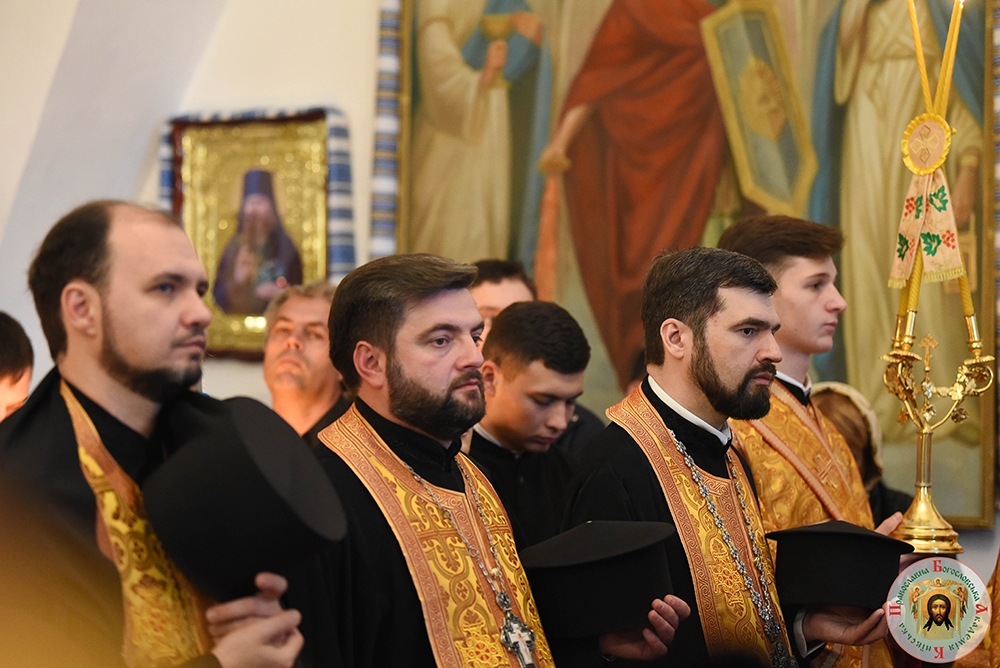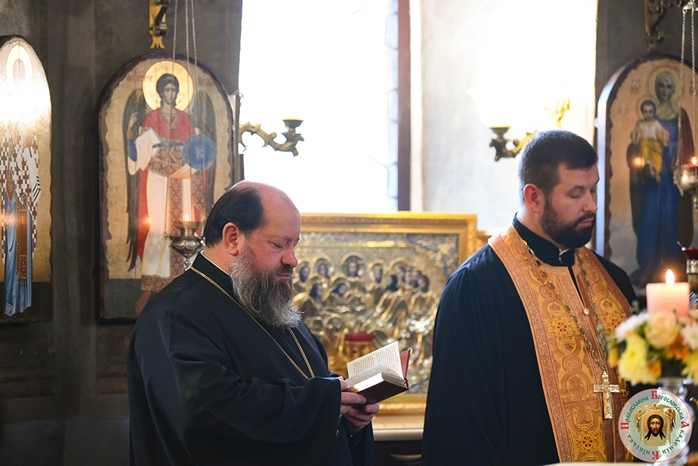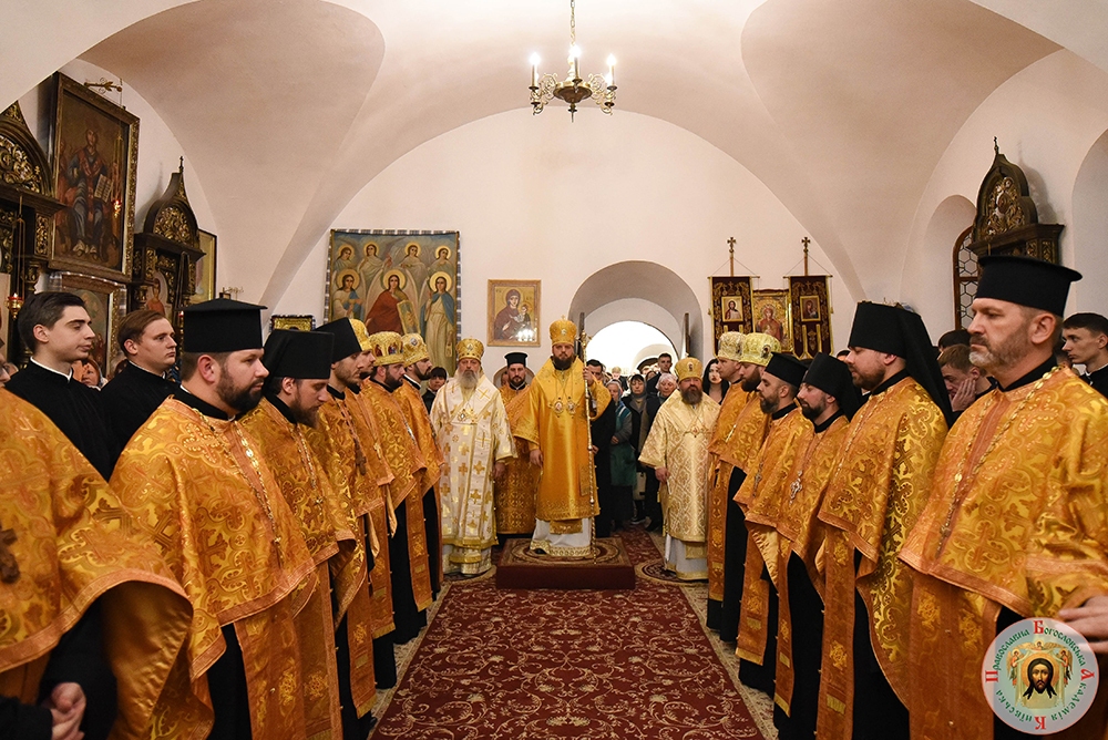 Святкове богослужіння очолив намісник Золотоверхої обителі архієпископ Вишгородський Агапіт у співслужінні єпископа Луганського і Старобільського Лаврентія, єпископа Бориспільського Антонія, ректора академії протоієрея Олександра Трофимлюка, викладачів та студентів у священному сані, всечесної братії монастиря та запрошеного духовенства.