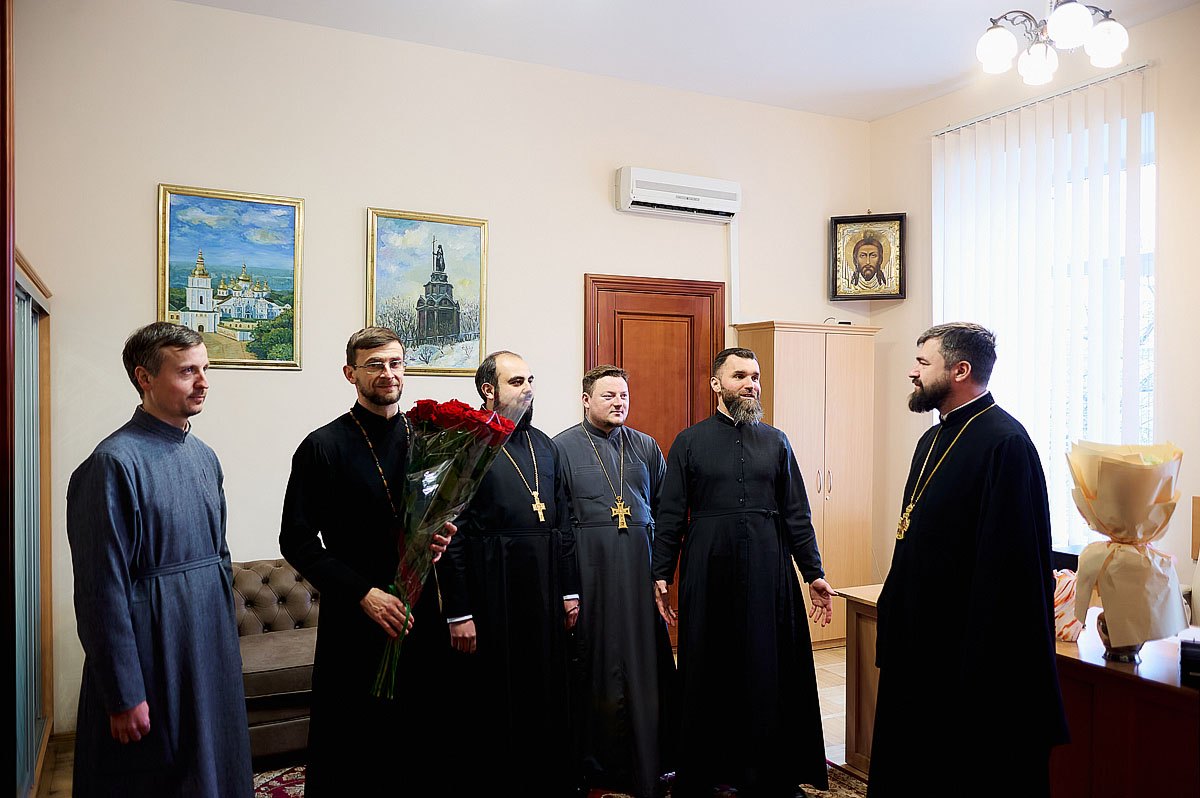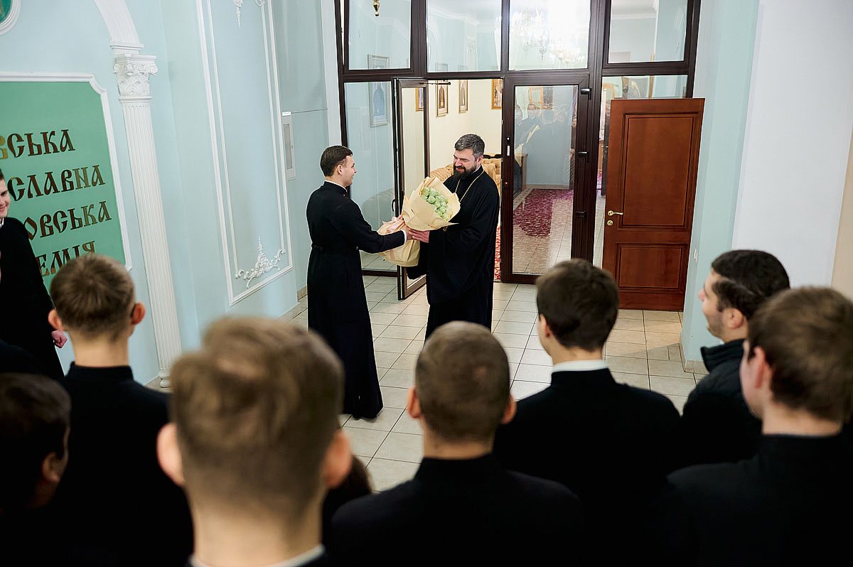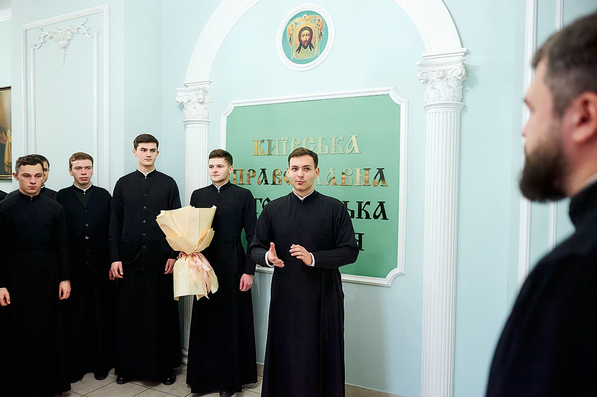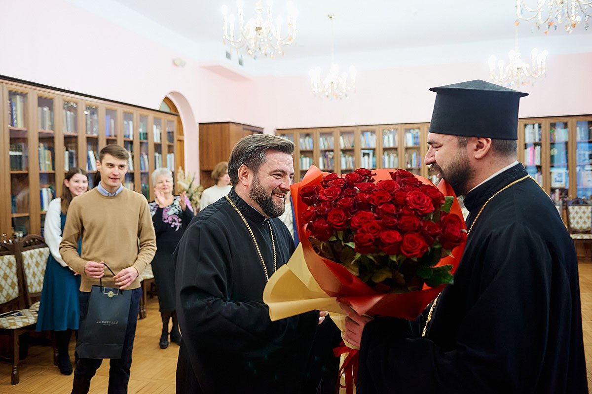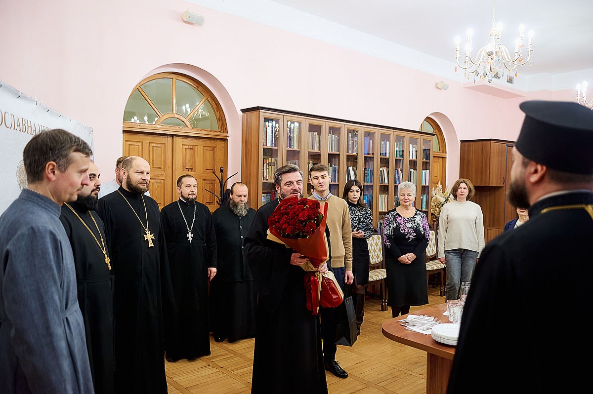 У понеділок, 2 грудня 2024 року, лунали слова привітань своєму ректорові і від учасників освітнього процесу Київської православної богословської академії, зокрема від професорсько-викладацької корпорації та співробітників слово виголосив перший проректор протоієрей Ярослав Романчук, від аспірантів і студентів – голова студентського самоврядування Дмитро Мацур, від Наукового студентського товариства – його голова Стефан Старовецький.