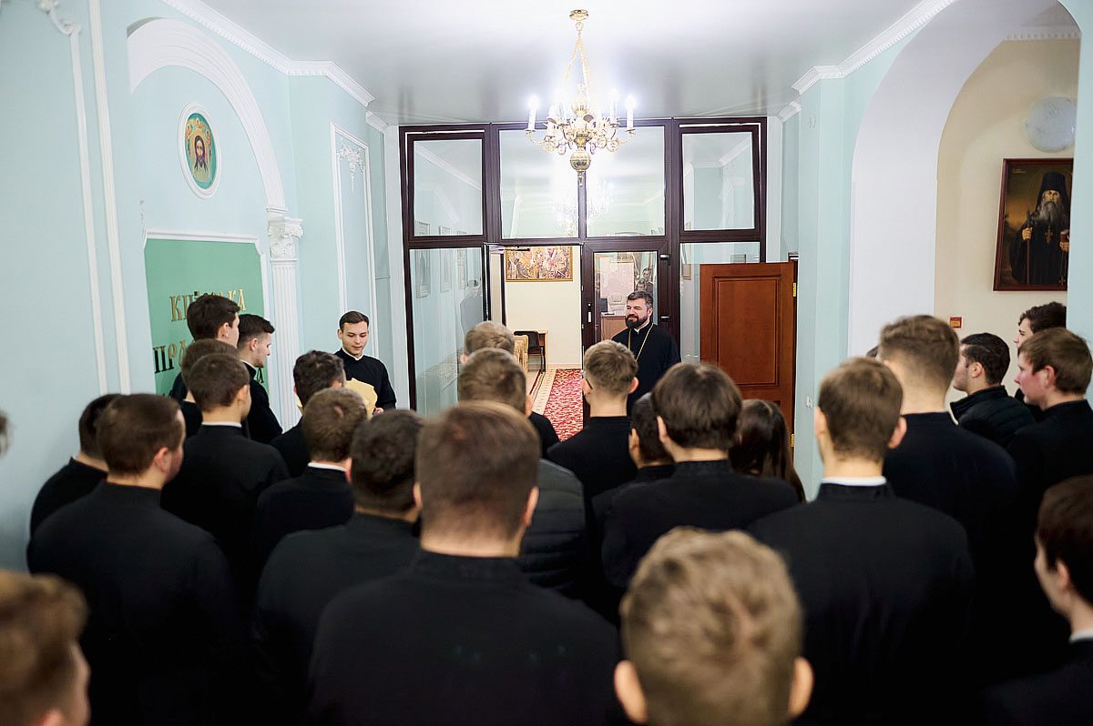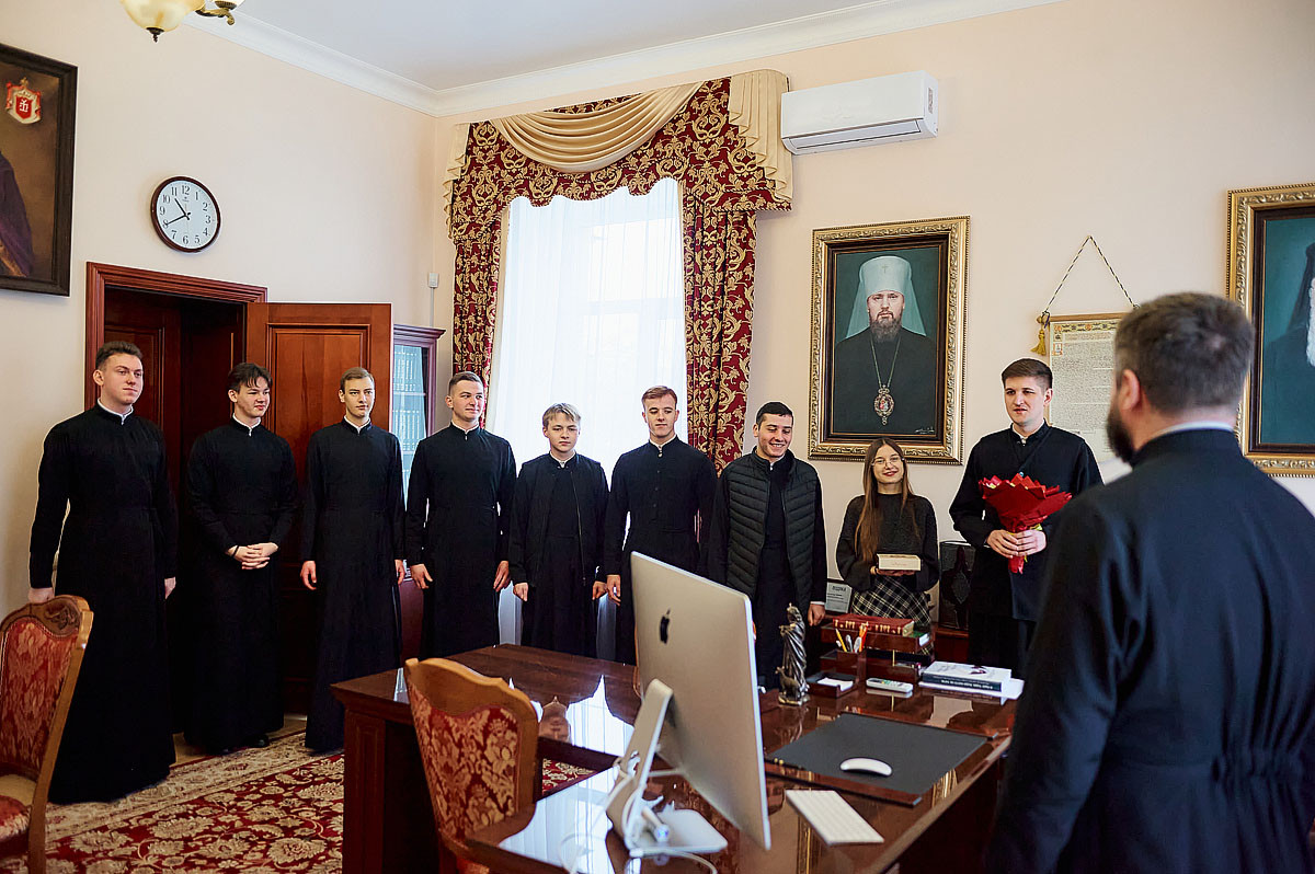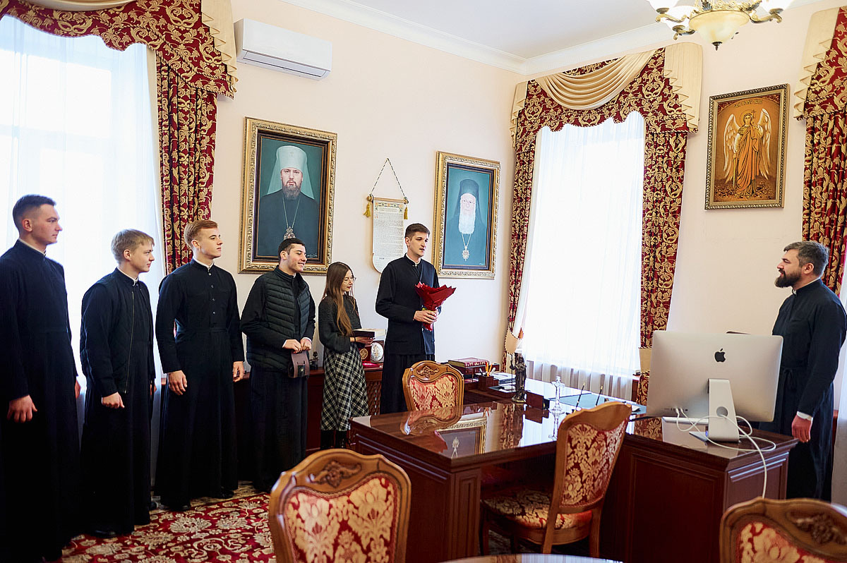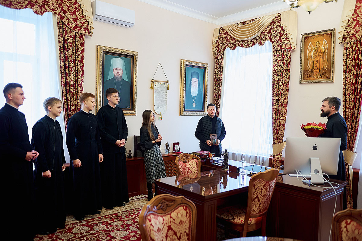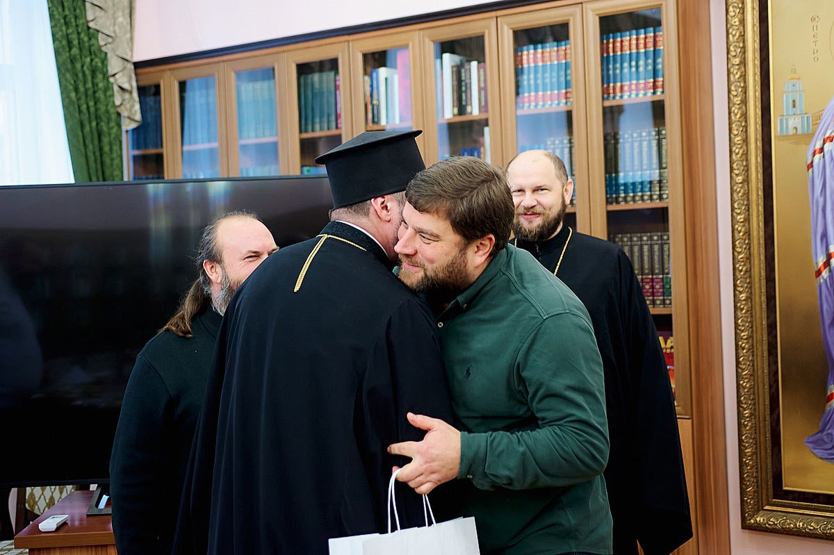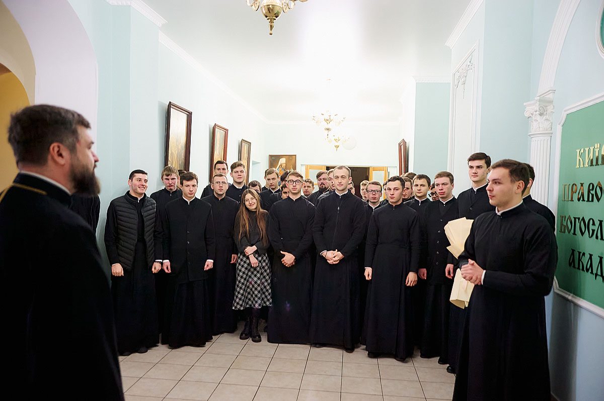 У понеділок, 2 грудня 2024 року, лунали слова привітань своєму ректорові і від учасників освітнього процесу Київської православної богословської академії, зокрема від професорсько-викладацької корпорації та співробітників слово виголосив перший проректор протоієрей Ярослав Романчук, від аспірантів і студентів – голова студентського самоврядування Дмитро Мацур, від Наукового студентського товариства – його голова Стефан Старовецький.