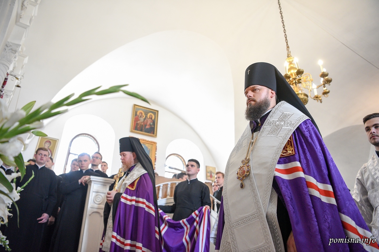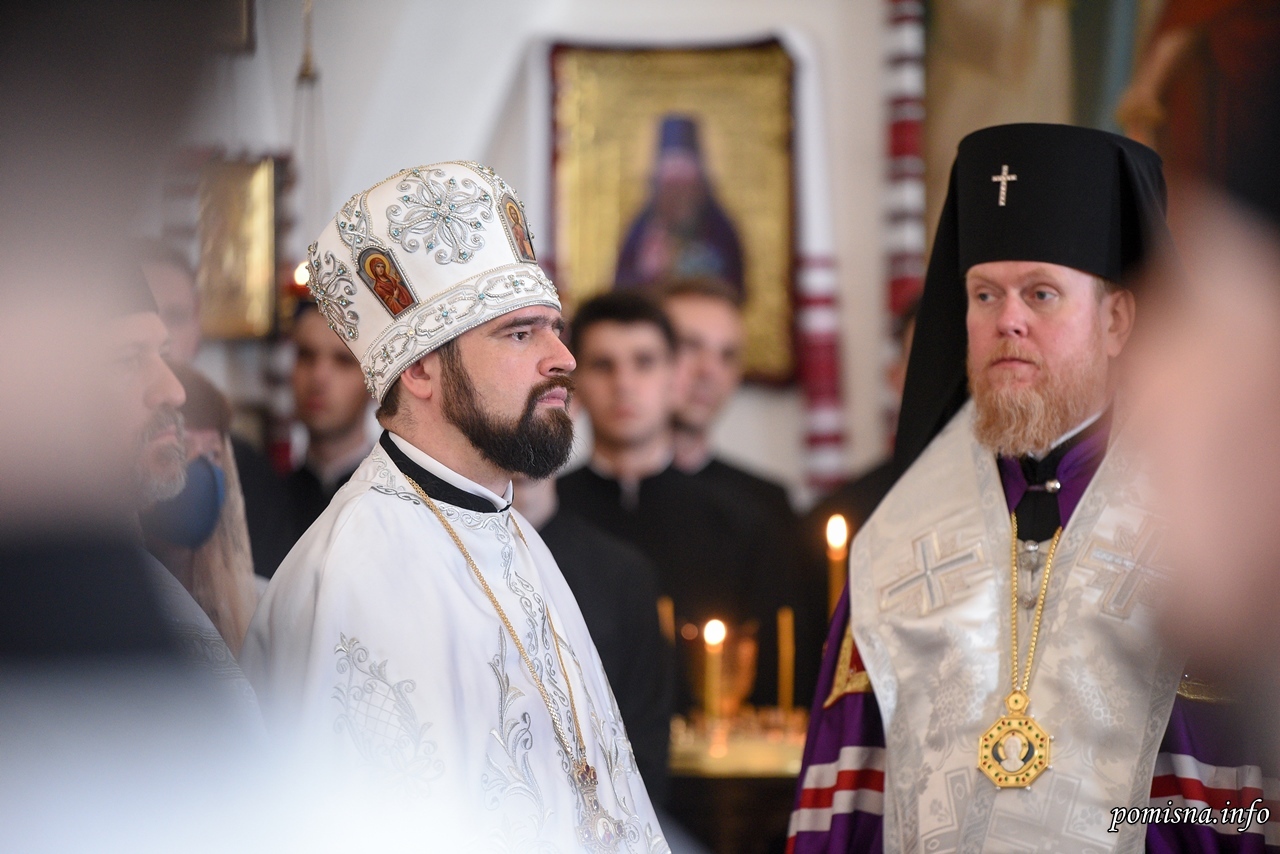 Після завершення літургії ректор КПБА, професор протоієрей Олександр Трофимлюк, архієпископ Чернігівський і Ніжинський Євстратій, архієпископ Вишгородський Агапіт, викладачі, студенти й випускники духовного навчального закладу урочисто зустрічали Предстоятеля Православної Церкви України Блаженнішого Митрополита Київського і всієї України Епіфанія, який очолив подячний молебінь.