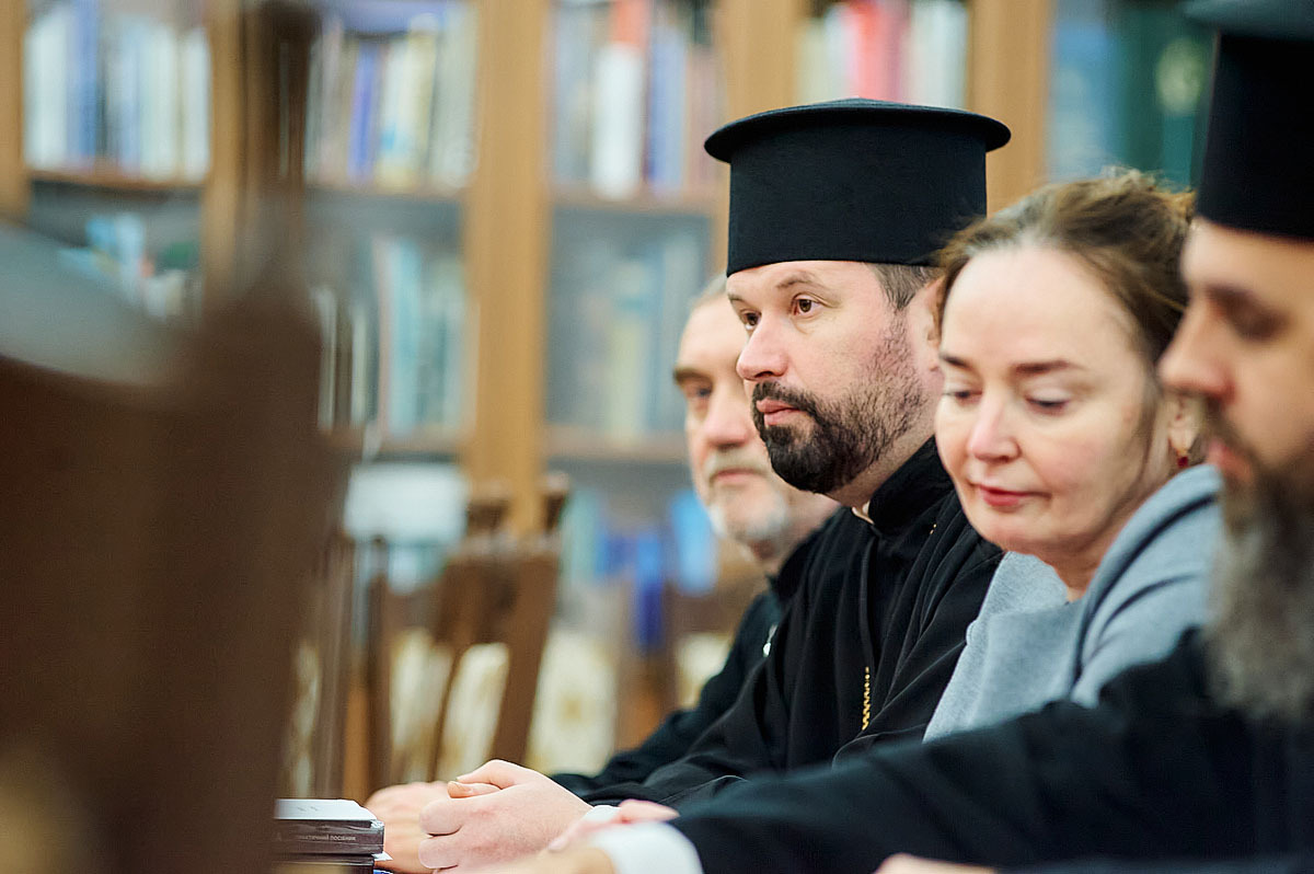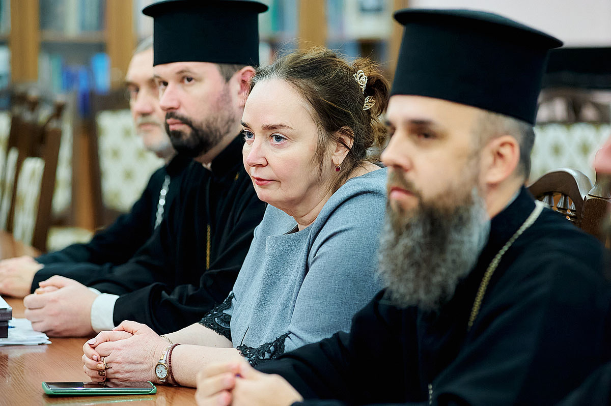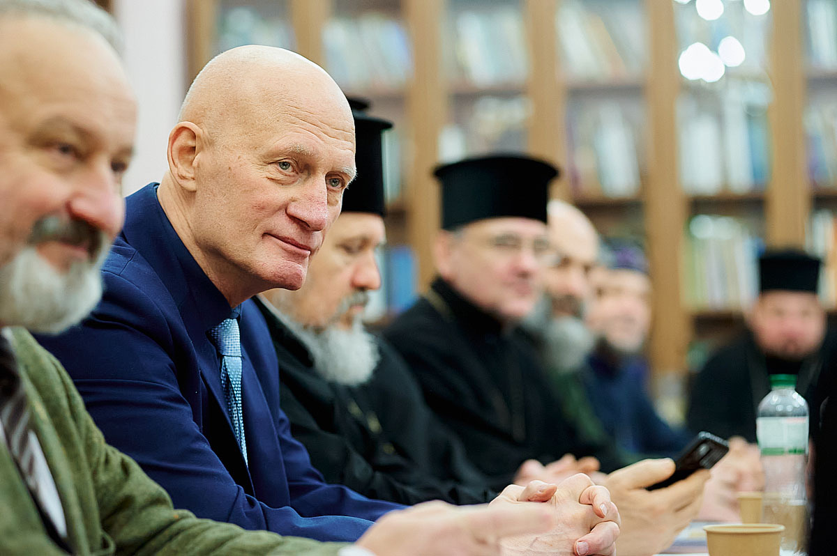 Далі засідання продовжилося у форматі круглого столу «Принципи, форми та методи організації і здійснення капеланської діяльності в закладах охорони здоровʼя», організованого кафедрою богослівʼя, модератор – протоієрей Павло Мельник, доцент кафедри богослів’я Київської православної богословської академії, кандидат наук із богослів’я.