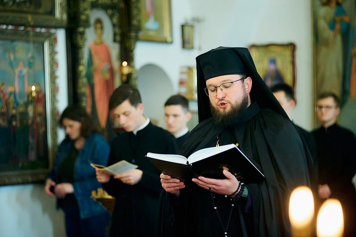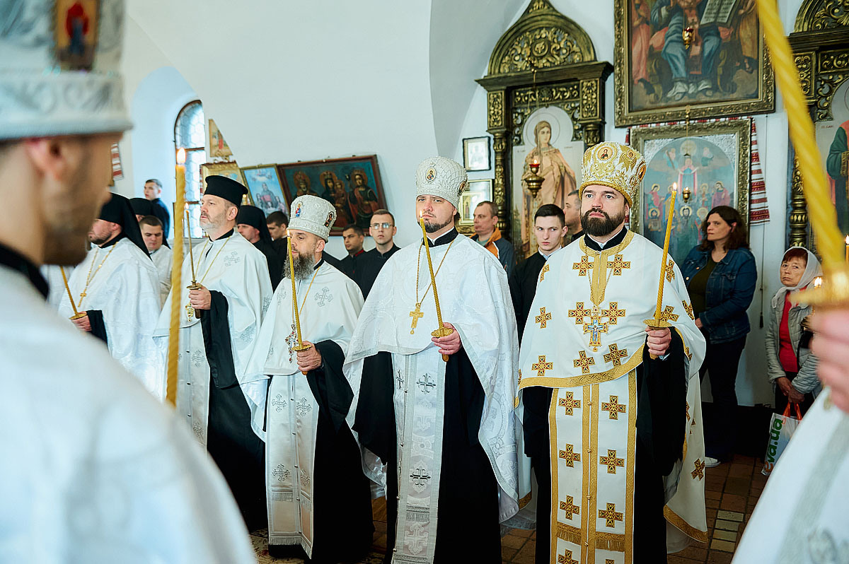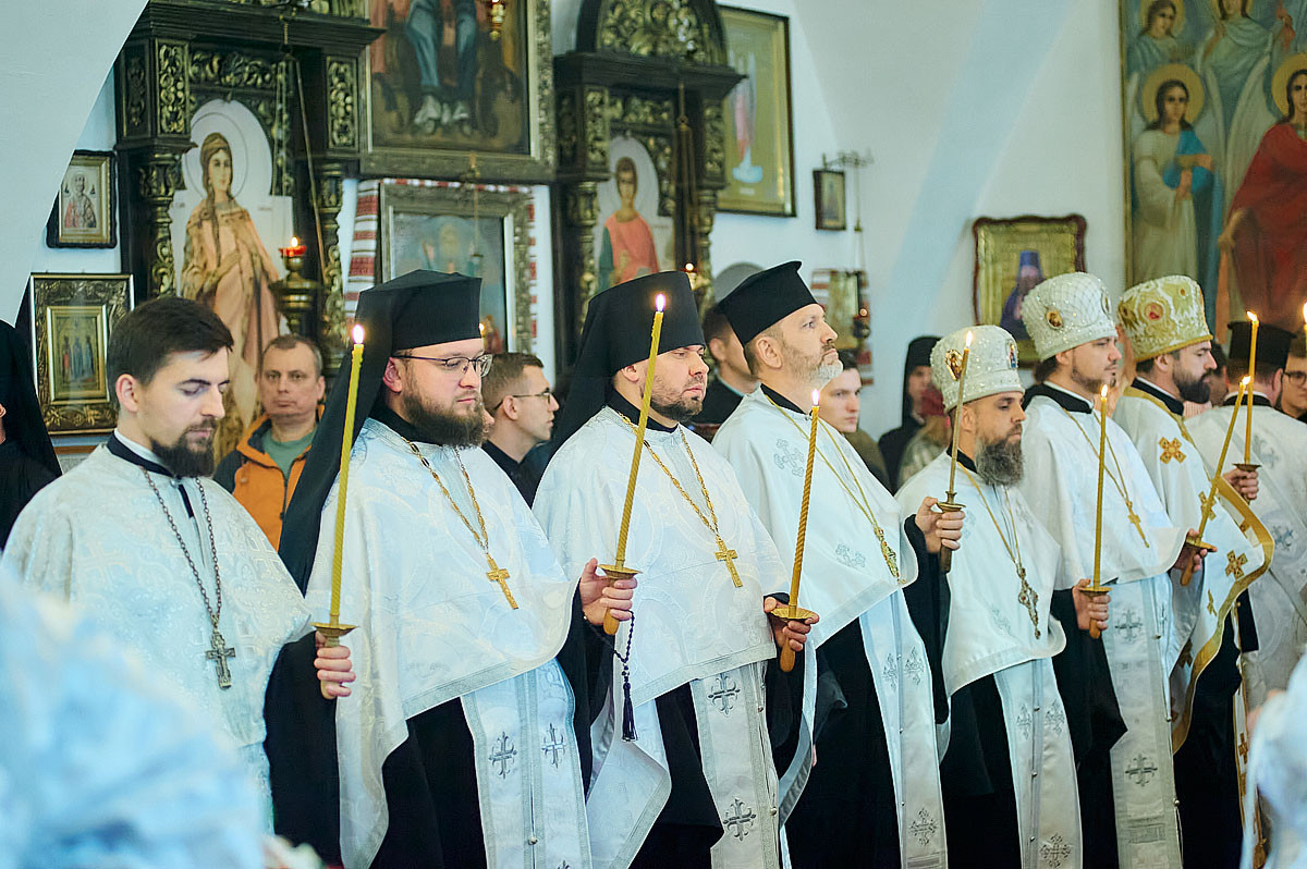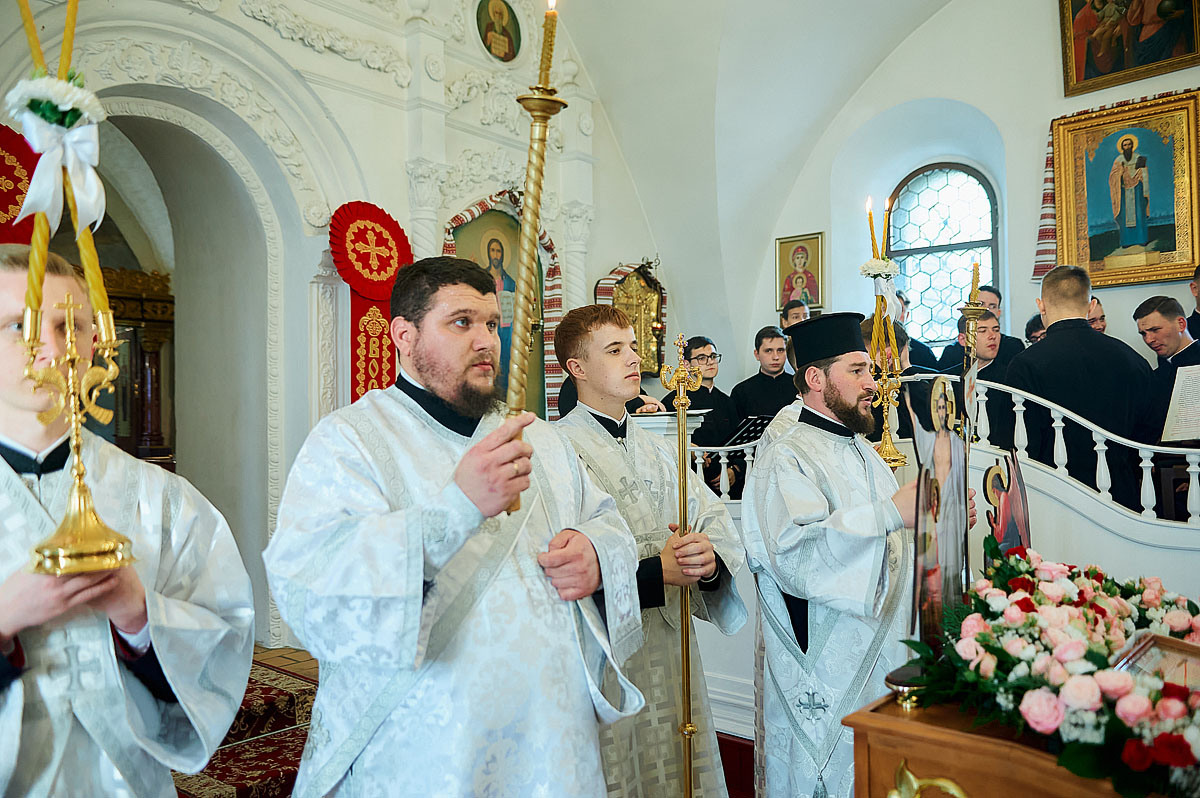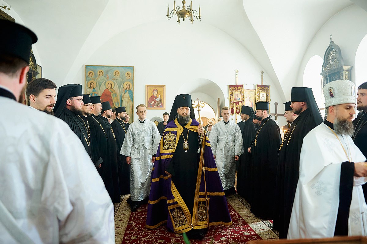 Його Високопреосвященству співслужили вікарій Київської єпархії єпископ Васильківський Єфрем, ректор КПБА професор протоієрей Олександр Трофимлюк, викладачі та студенти КПБА, братія монастиря та духовенство академічного храму.