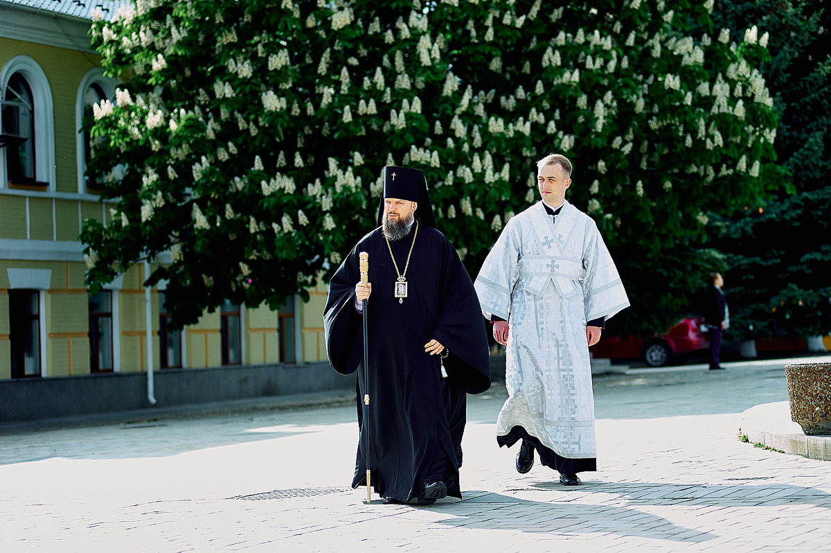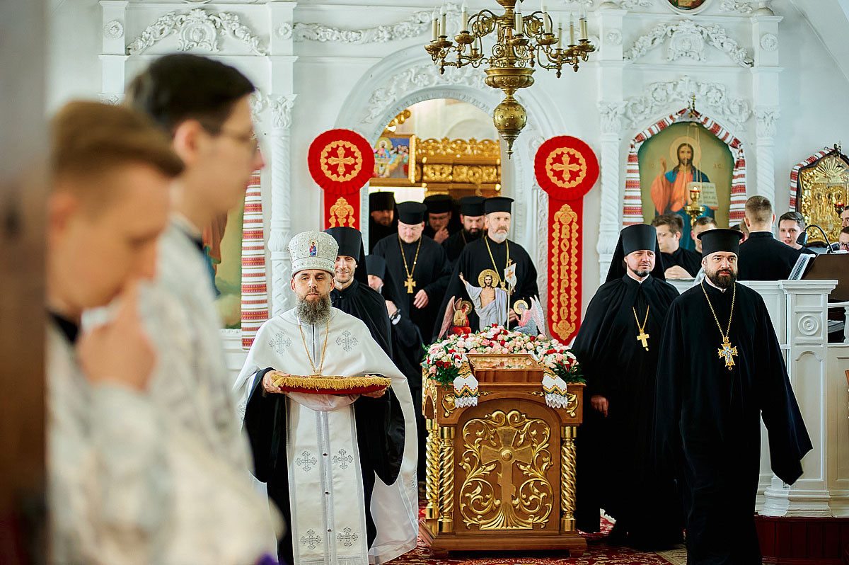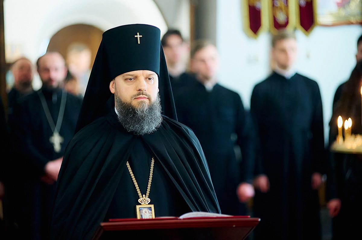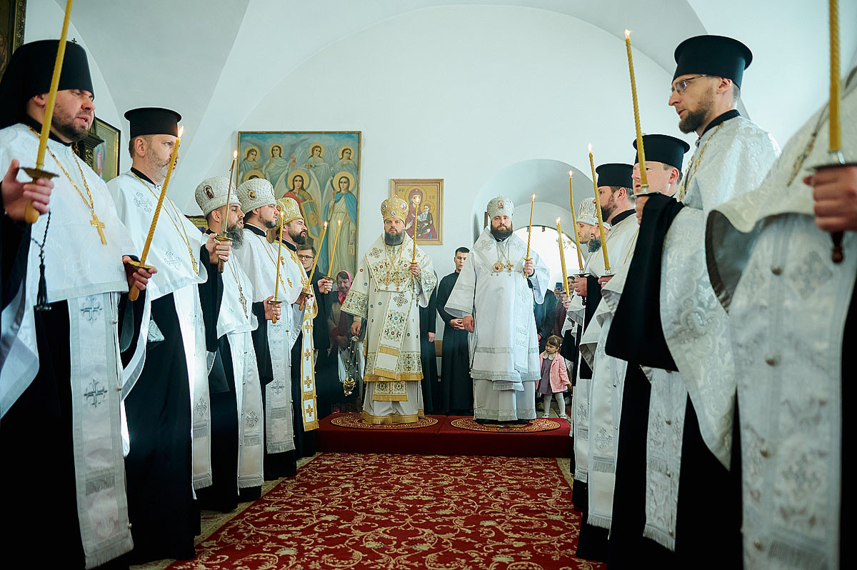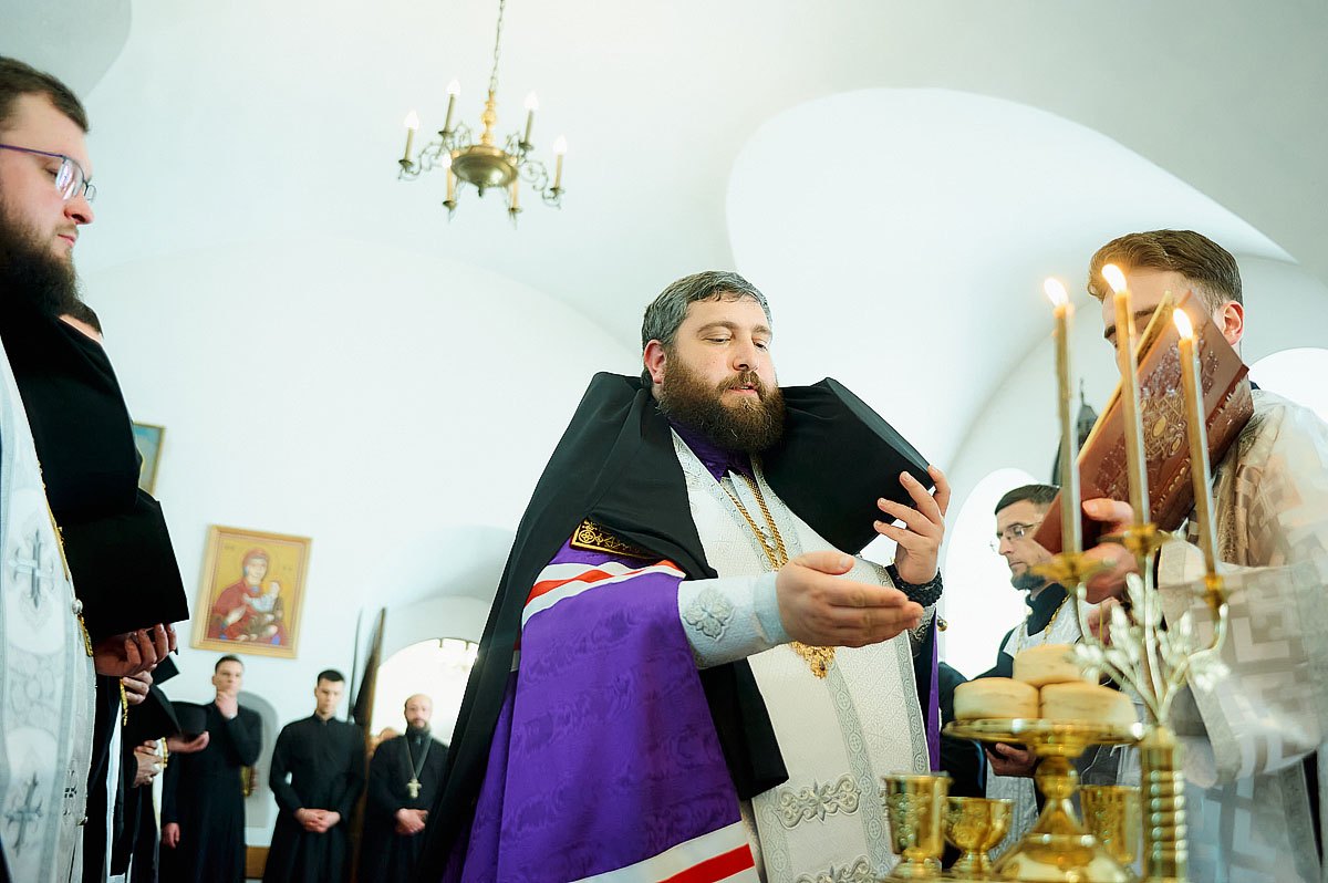 Його Високопреосвященству співслужили вікарій Київської єпархії єпископ Васильківський Єфрем, ректор КПБА професор протоієрей Олександр Трофимлюк, викладачі та студенти КПБА, братія монастиря та духовенство академічного храму.