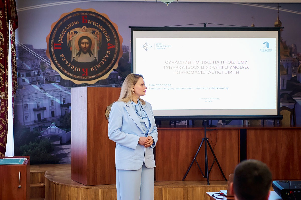 У межах проєкту “Публічний лекторій” на запрошення проректора з виховної роботи Київської православної богословської академії протодиякона Василя Дідори завідувач відділу управління та протидії туберкульозу Центру громадського здоровʼя Яна Терлеєва 12 березня 2024 року прочитала лекцію “Сучасний погляд на проблему туберкульозу в Україні в умовах повномасштабної війни”.