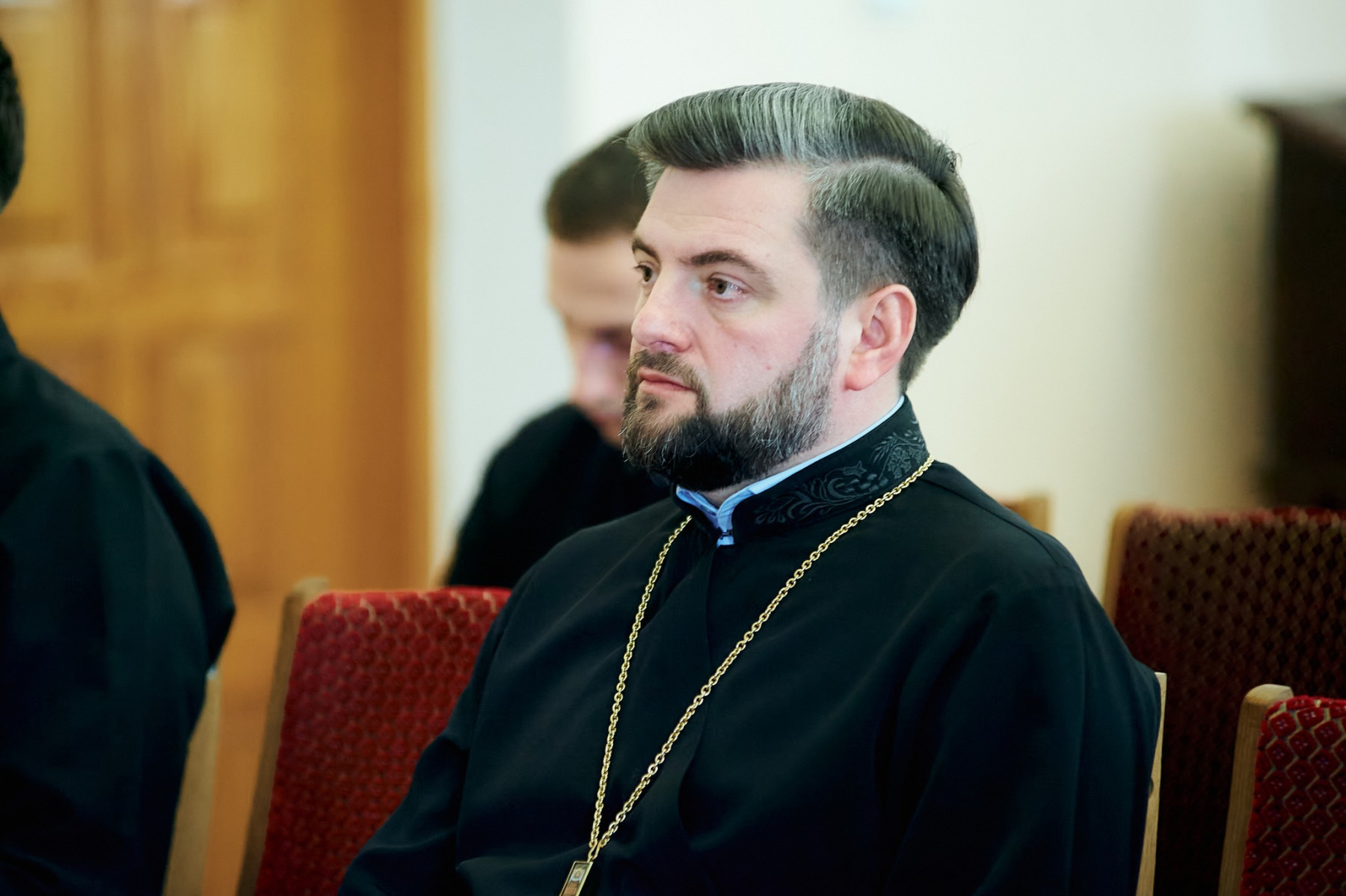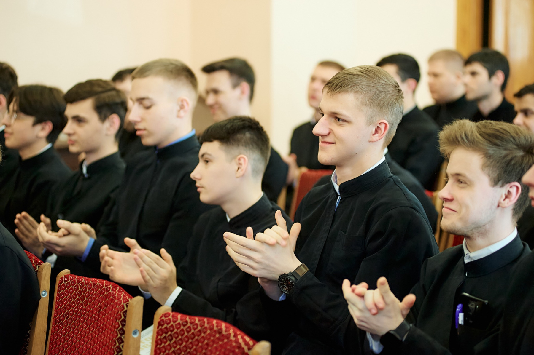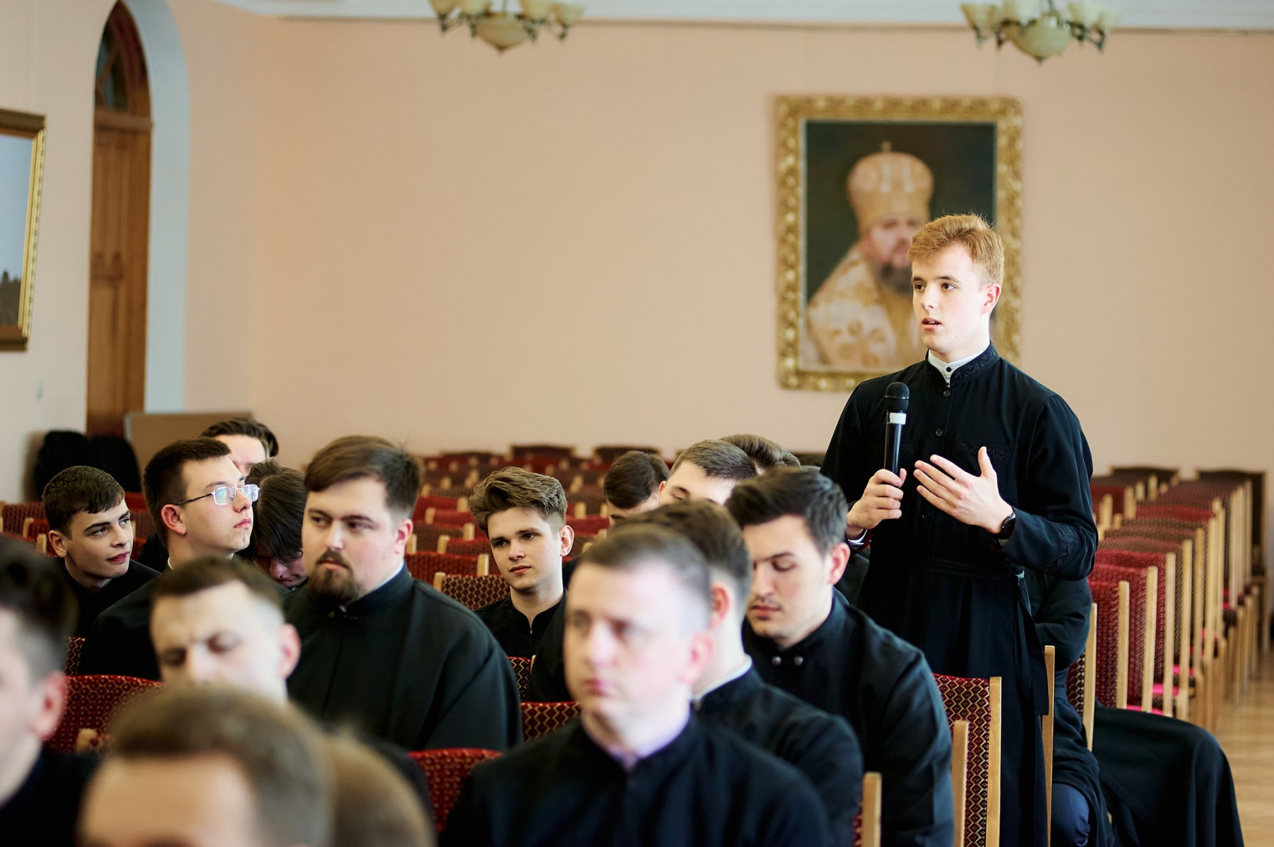 Почалась зустріч зі вступного слова першого проректора, протоієрея Ярослава Романчука, який наголосив на важливості духовної опіки наших солдатів, особливо на передовій, а також представив слухачам лектора.