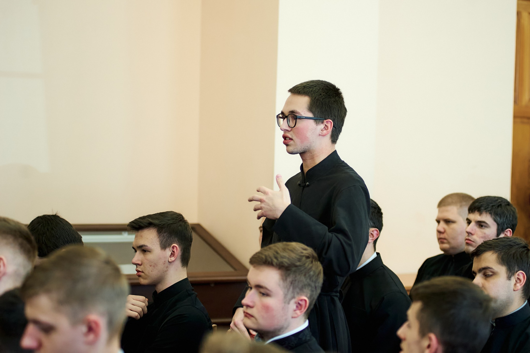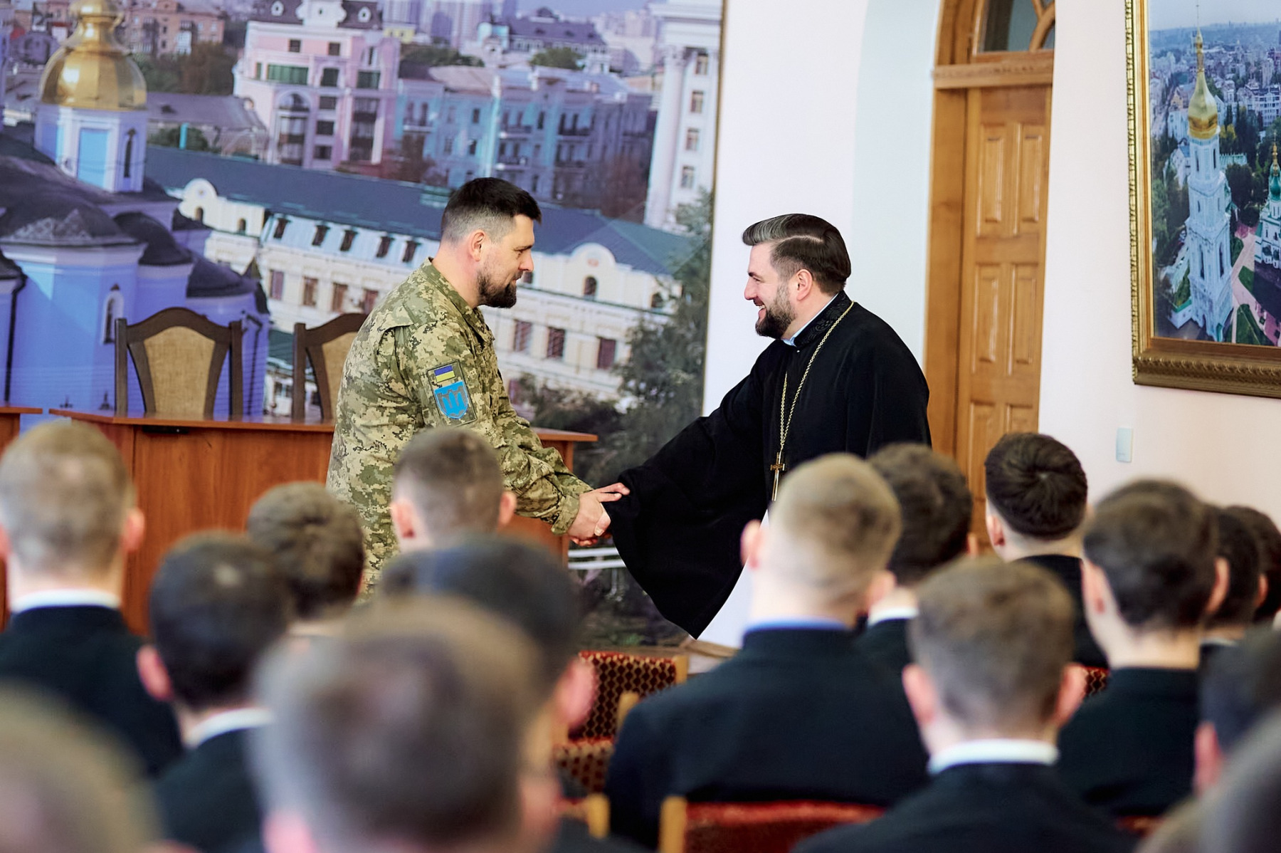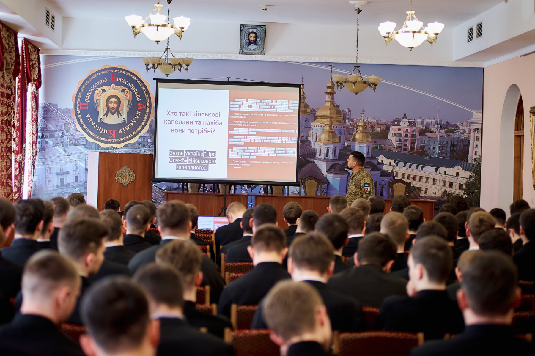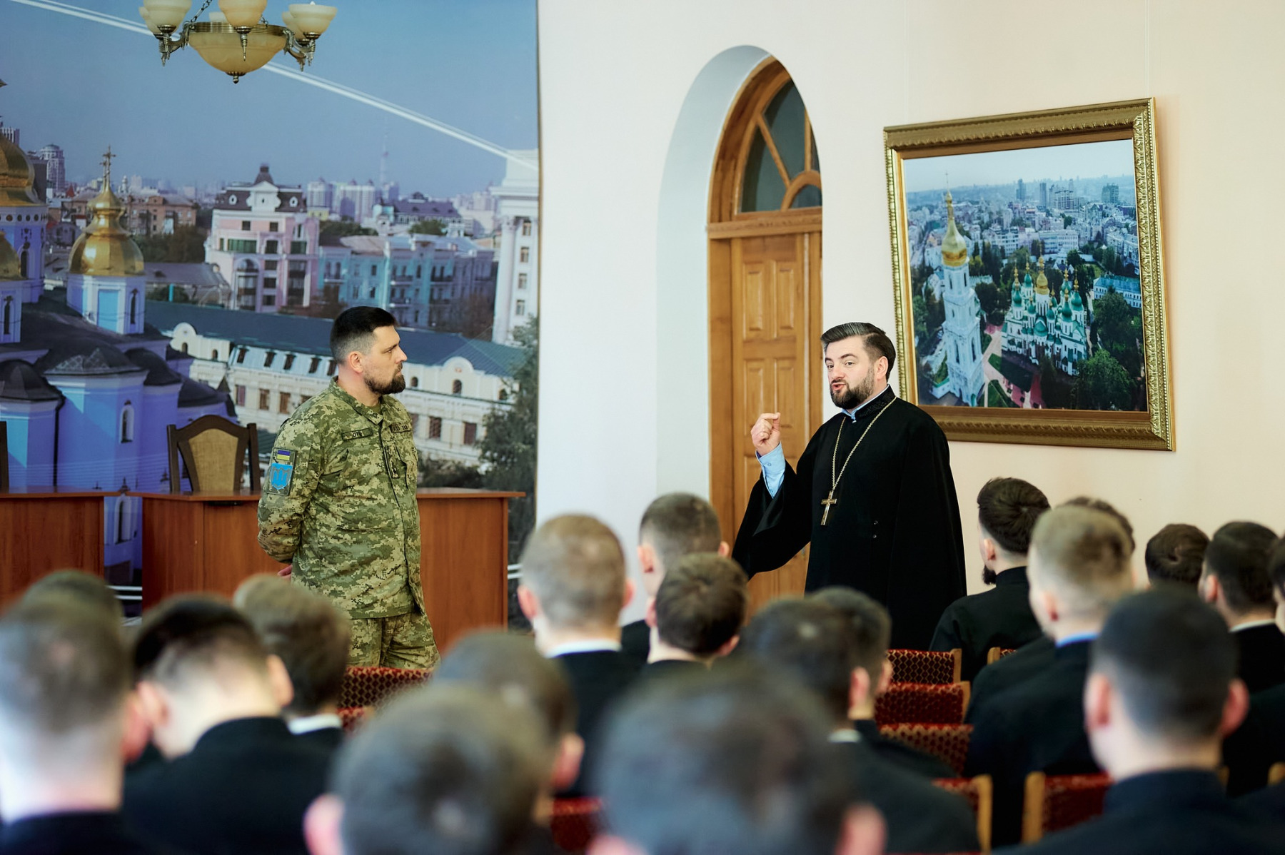 Цікава тема викликала жваву дискусію. Протоієрей Михаїл поділився власним досвідом капеланської служби у зоні проведення бойових дій, а також разом зі студентами мали міркування щодо подальшого розвитку та вдосконалення капеланського служіння в нашій країні.