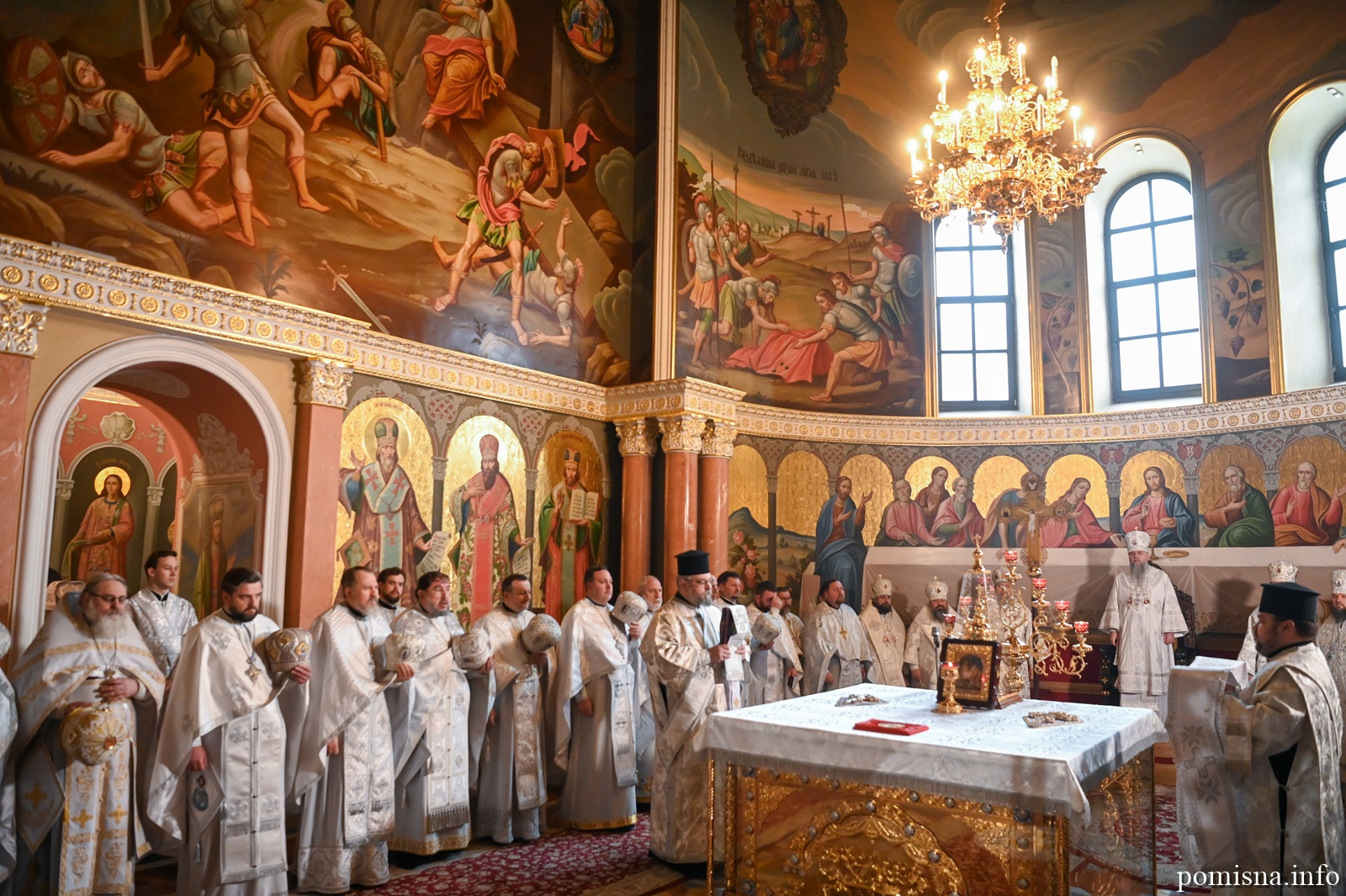 Його Блаженству співслужили митрополит Білоцерківський Євстратій, архієпископ Луганський і Старобільський Лаврентій, архієпископ Вишгородський Агапіт, єпископ Чернігівський і Ніжинський Антоній, єпископ Богуславський Арсеній, намісник обителі єпископ Бориспільський Авраамій, братія монастиря та запрошене духовенство.