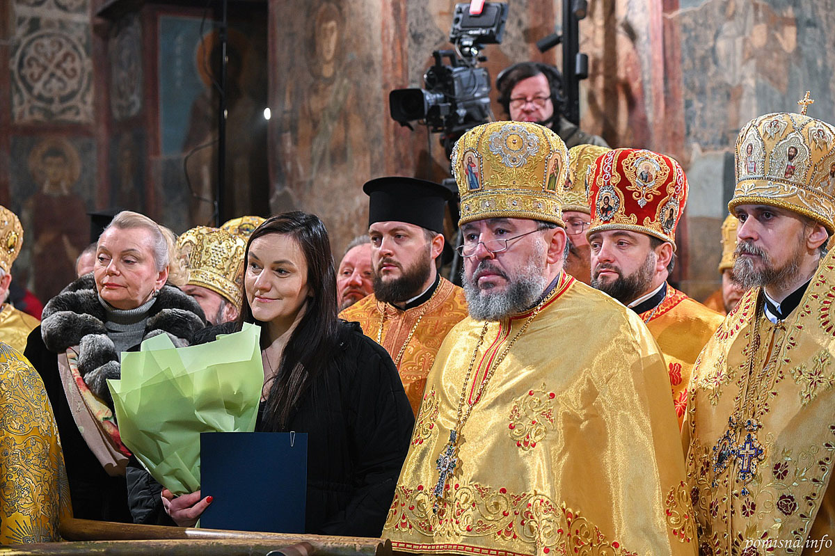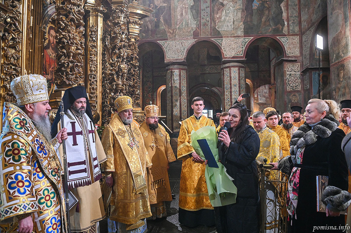 Урочистість доповнили вітальні слова митрополита Хмельницького і Шепетівського Симеона від імені Священного Синоду ПЦУ; від Вселенського Патріарха Варфоломія вітальний лист зачитав архієпископ Вишгородський Агапіт, а також Віце-прем’єр-міністр з гуманітарної політики – Міністр культури України Тетяна Бережна зачитала привітання від імені Прем’єр-міністра України Юлії Свириденко.