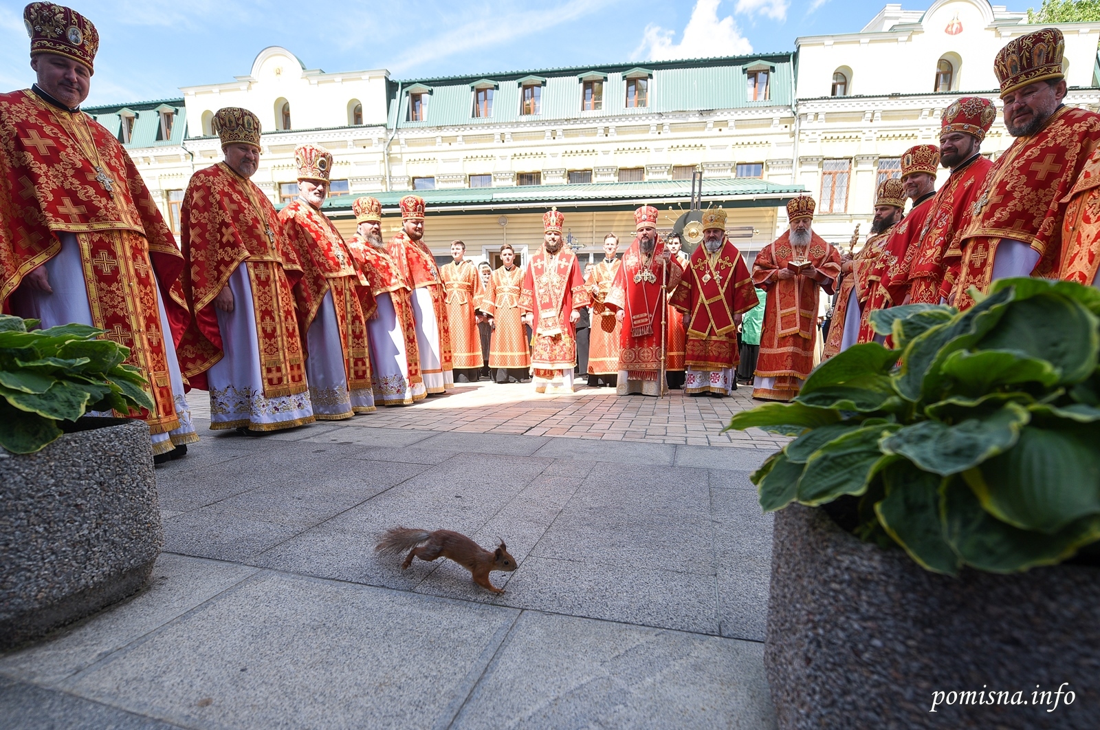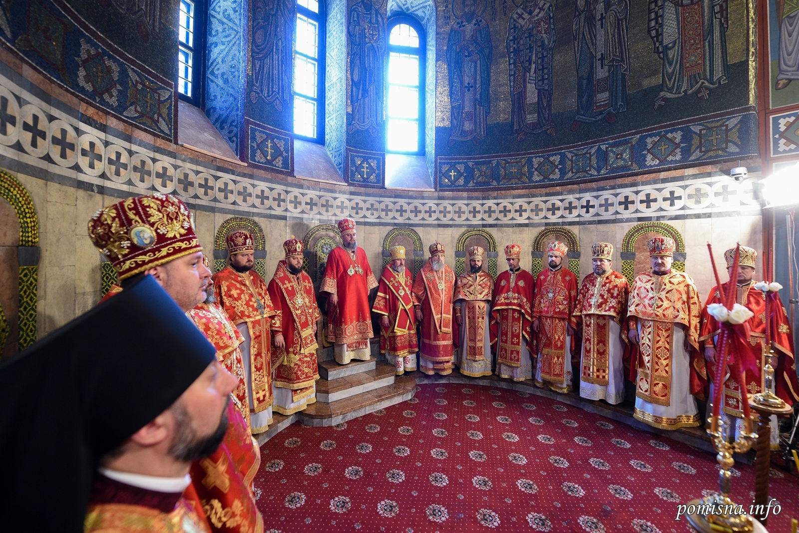 Його Блаженству співслужили митрополит Сімферопольський і Кримський Климент, намісник Золотоверхої обителі архієпископ Вишгородський Агапіт, єпископ Луганський і Старобільський Лаврентій, всечесна братія монастиря та запрошене духовенство, серед якого й ректор академії, професор протоієрей Олександр Трофимлюк.