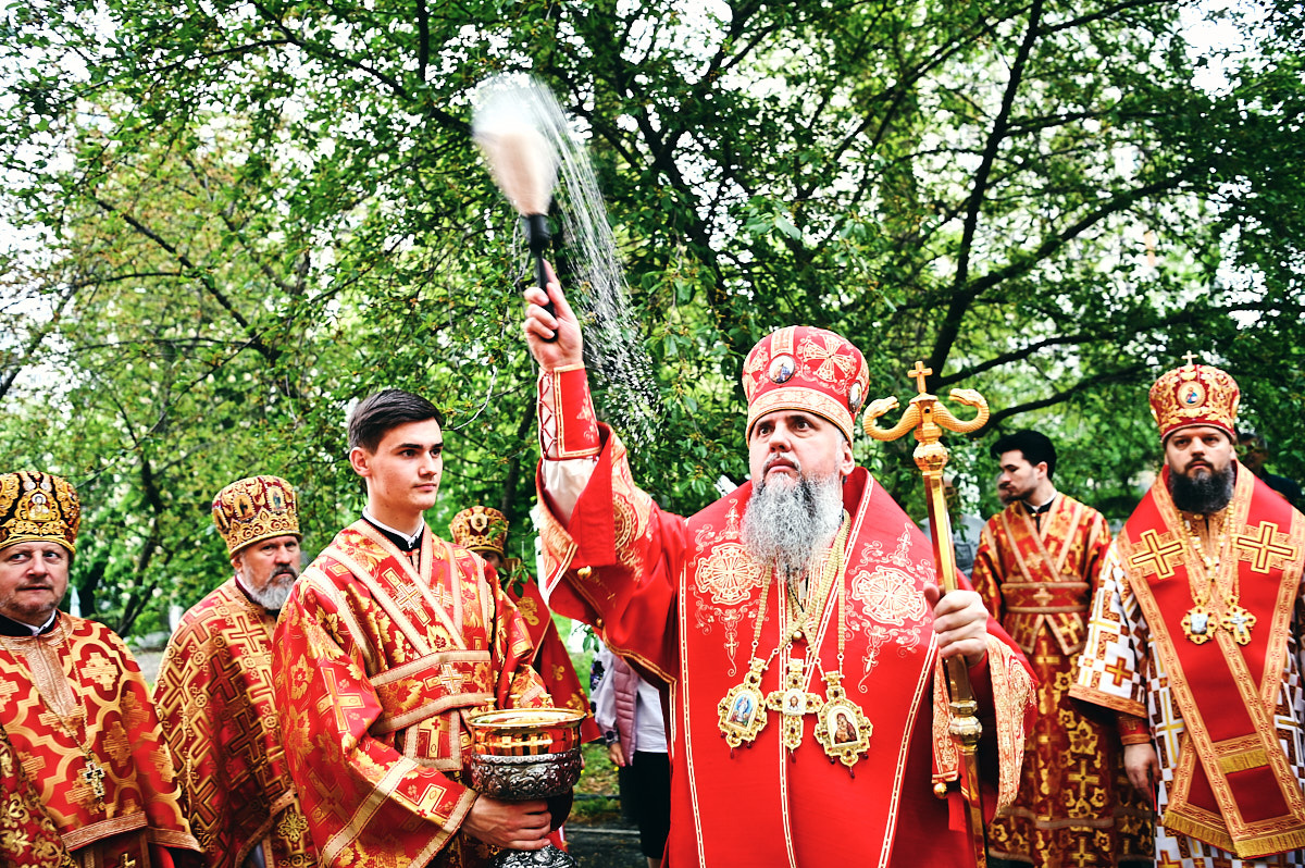 Предстоятелю автокефальної Православної Церкви України співслужили архієпископ Вишгородський Агапіт, єпископ Бориспільський Авраамій, настоятель храму, ректор Київської православної богословської академії протоієрей Олександр Трофимлюк, протоієрей Ярослав Романчук, протоієрей Сергій Цьома, священник Богдан Гайдай, протодиякон Микола Кучер та запрошене духовенство.
