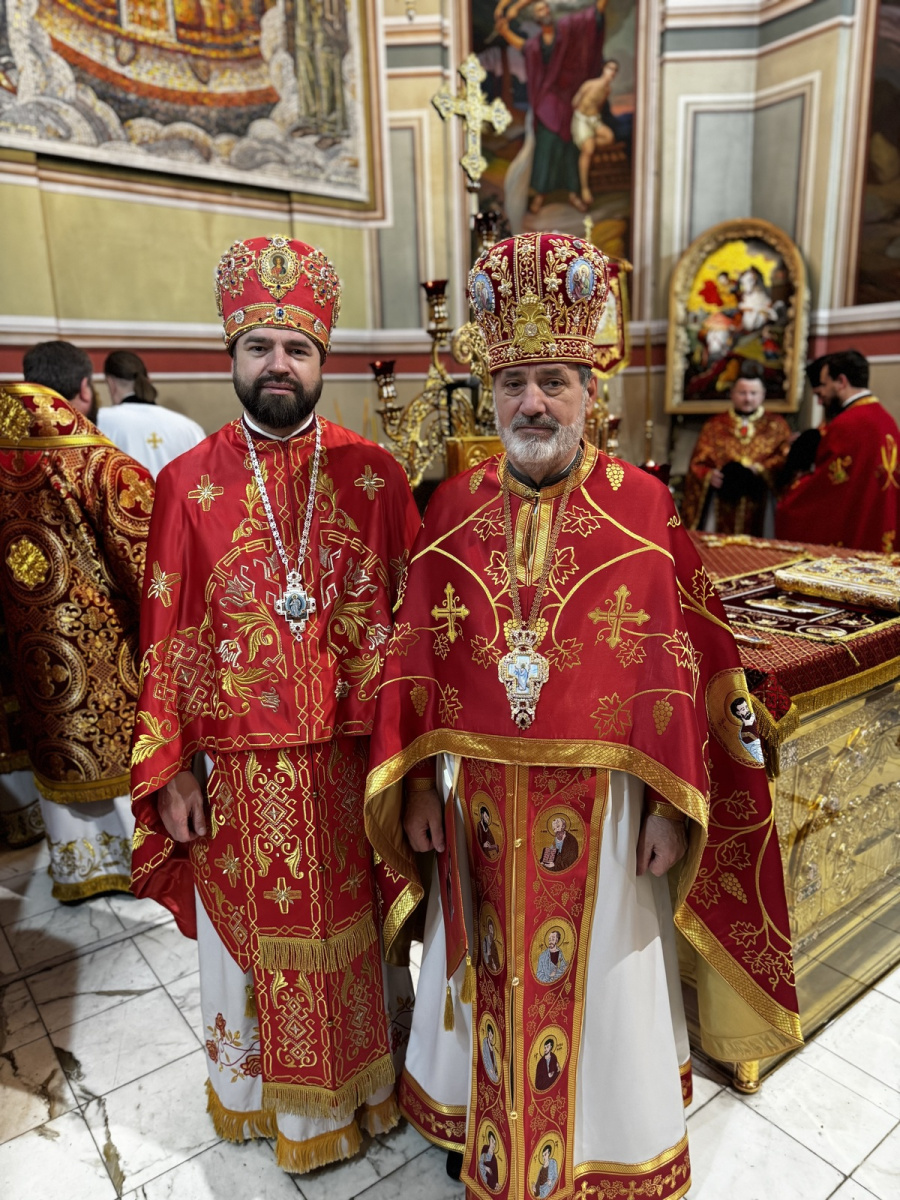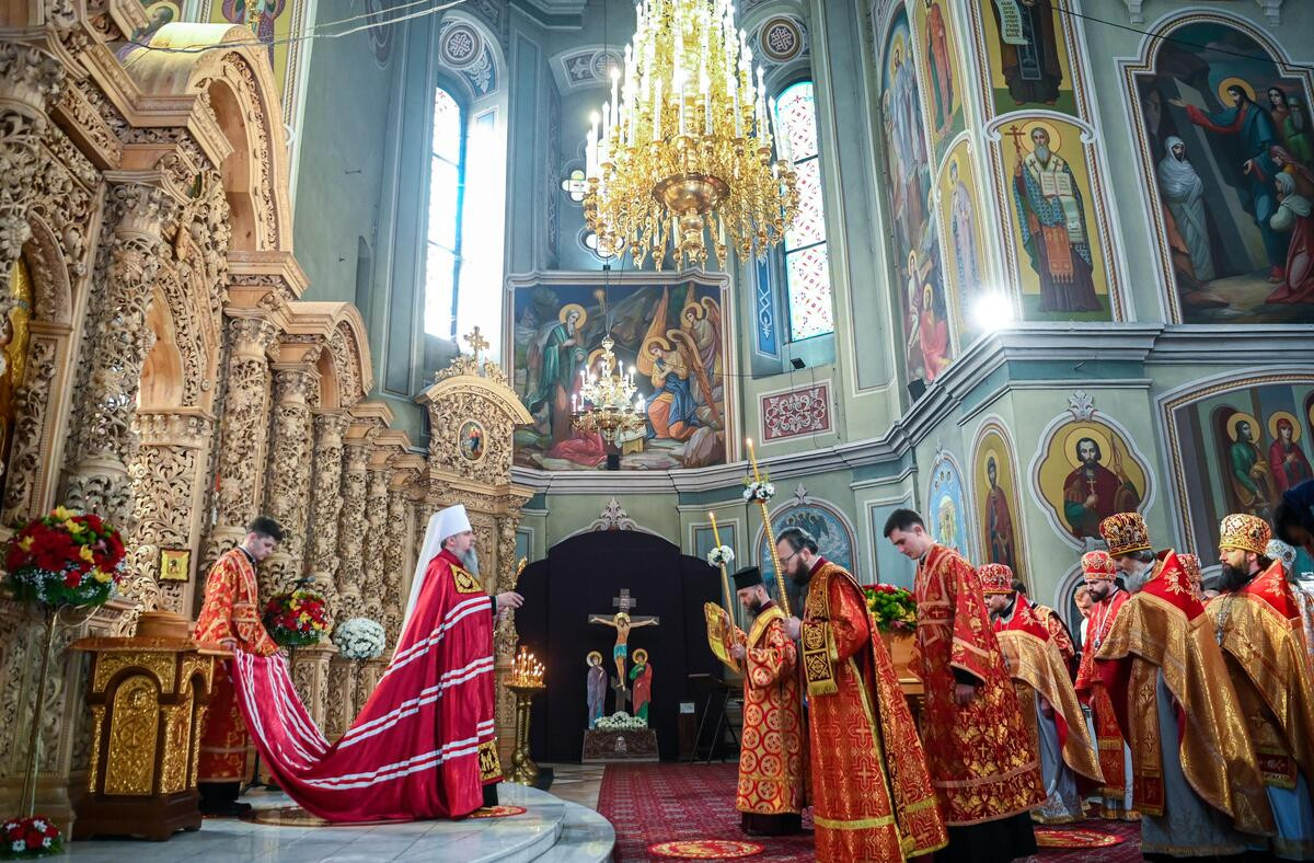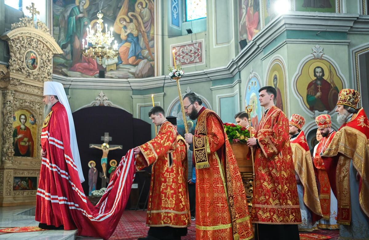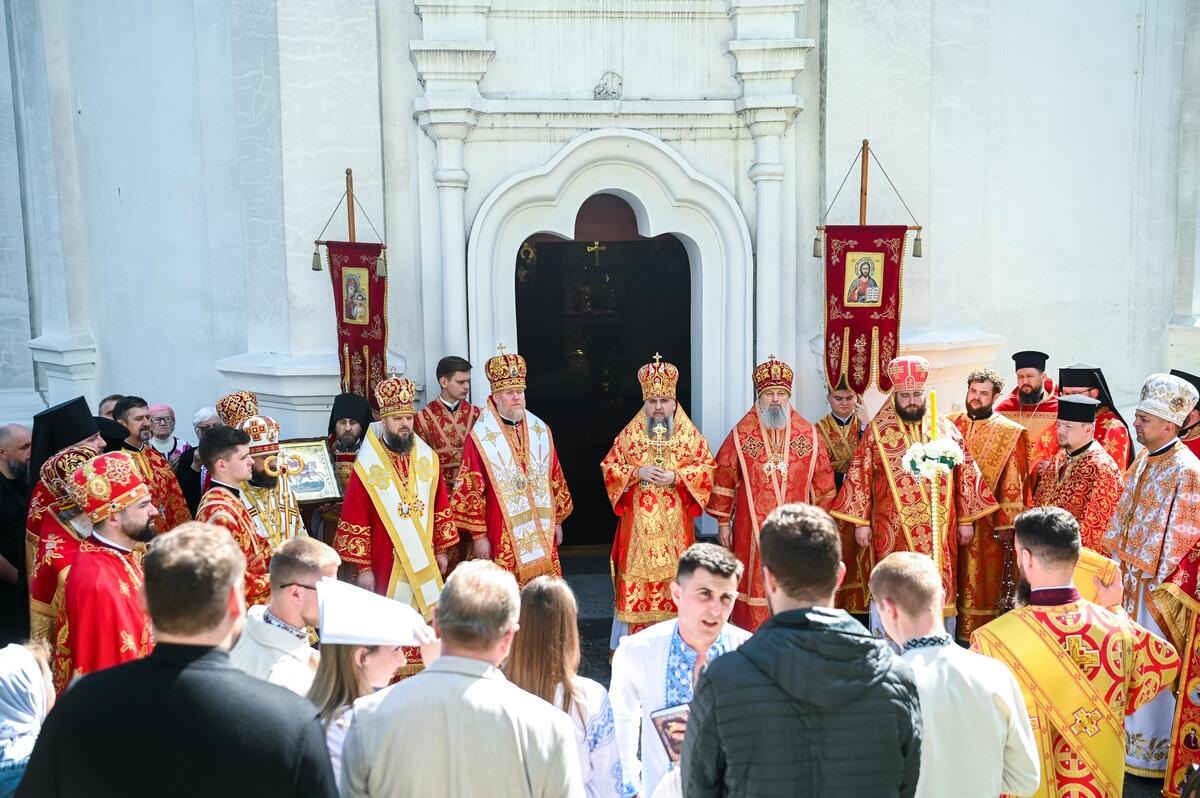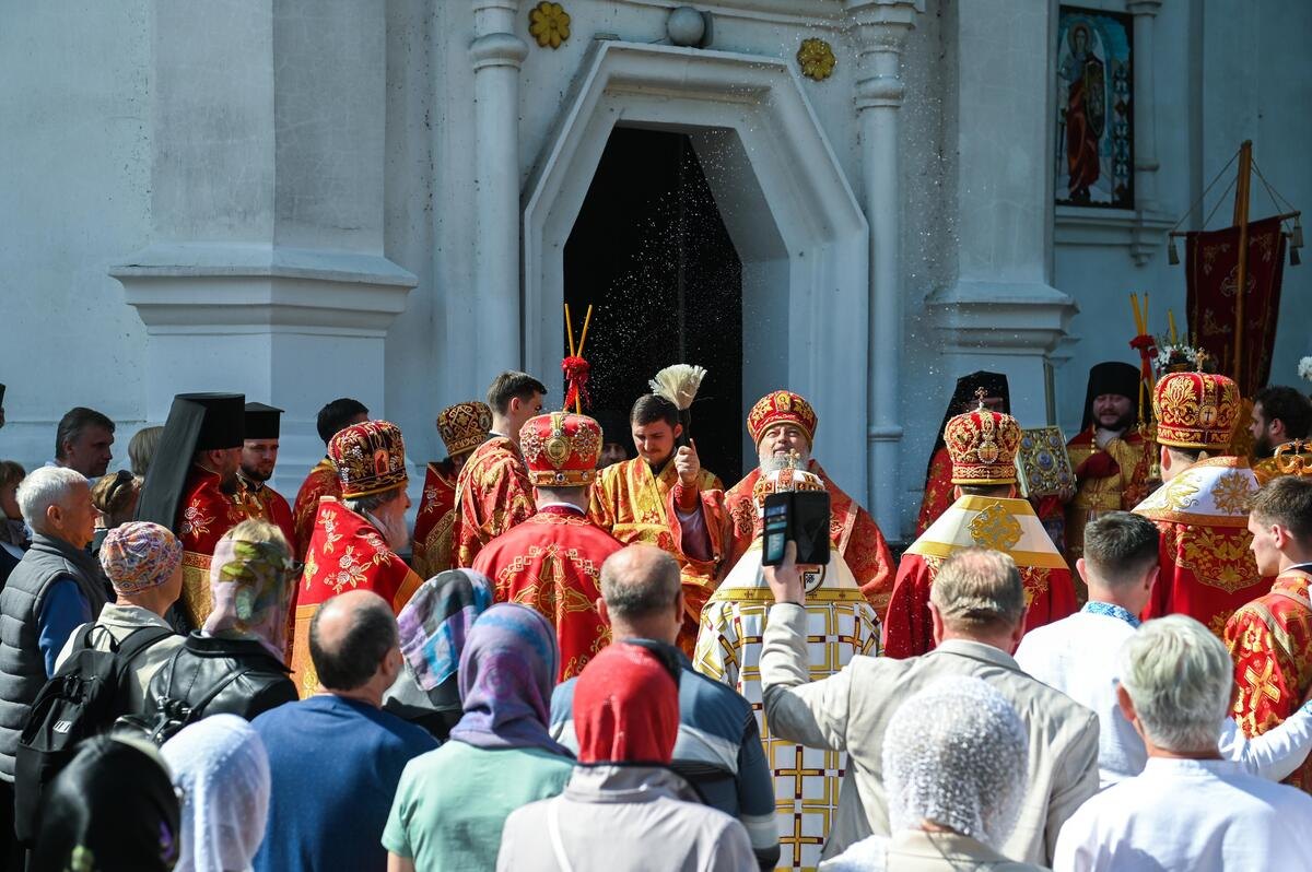 Предстоятелю автокефальної Православної Церкви України співслужили митрополит Білоцерківський Євстратій, архієпископ Луганський і Старобільський Лаврентій, архієпископ Вишгородський Агапіт, єпископ Васильківський Єфрем, єпископ Бориспільський Авраамій, а також братія обителі та запрошене духовенство, зокрема ректор Київської православної богословської академії професор протоієрей Олександр Трофимлюк.