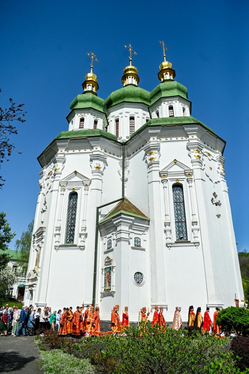 З нагоди престольного свята головного собору Києво-Видубицького Михайлівського монастиря – дня памʼяті великомученика Юрія Переможця– Блаженніший Митрополит Київський і всієї України Епіфаній 23 квітня 2025 року очолив Божественну літургію у Свято-Георгіївському соборі обителі.
