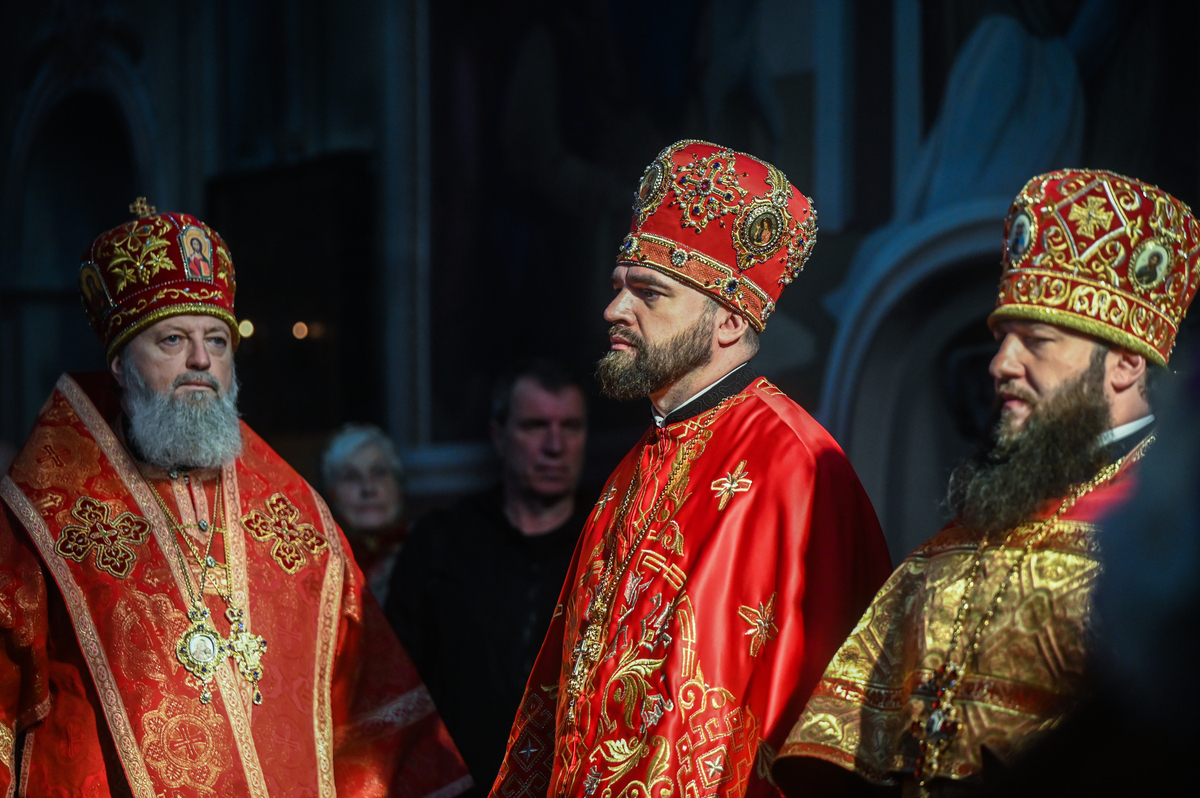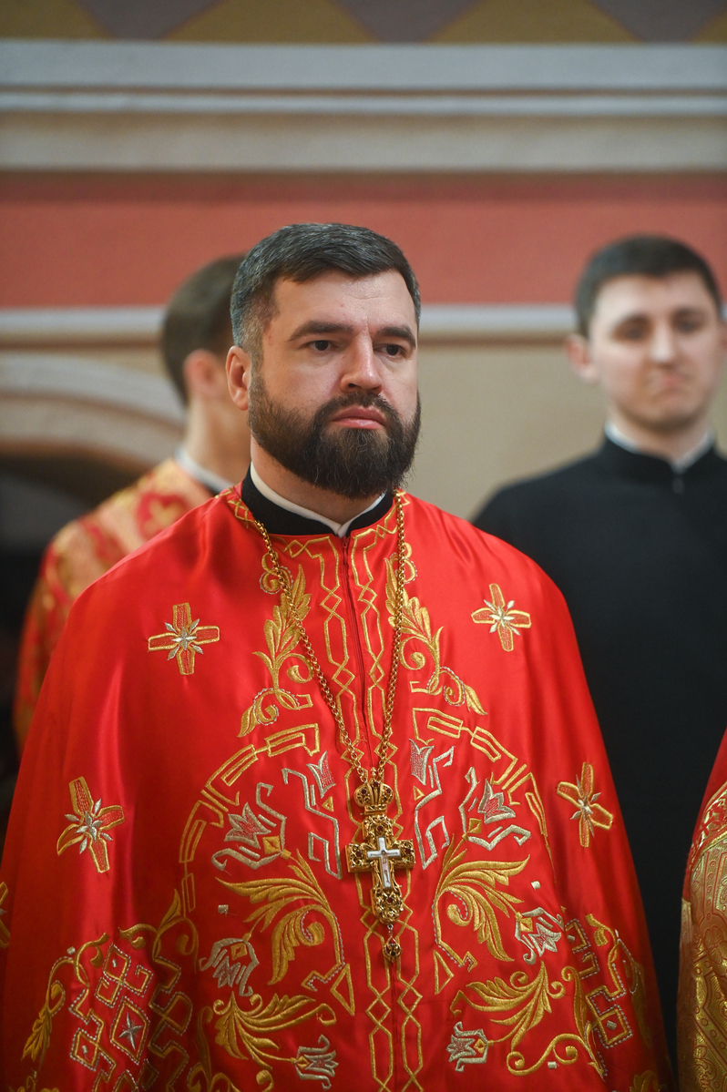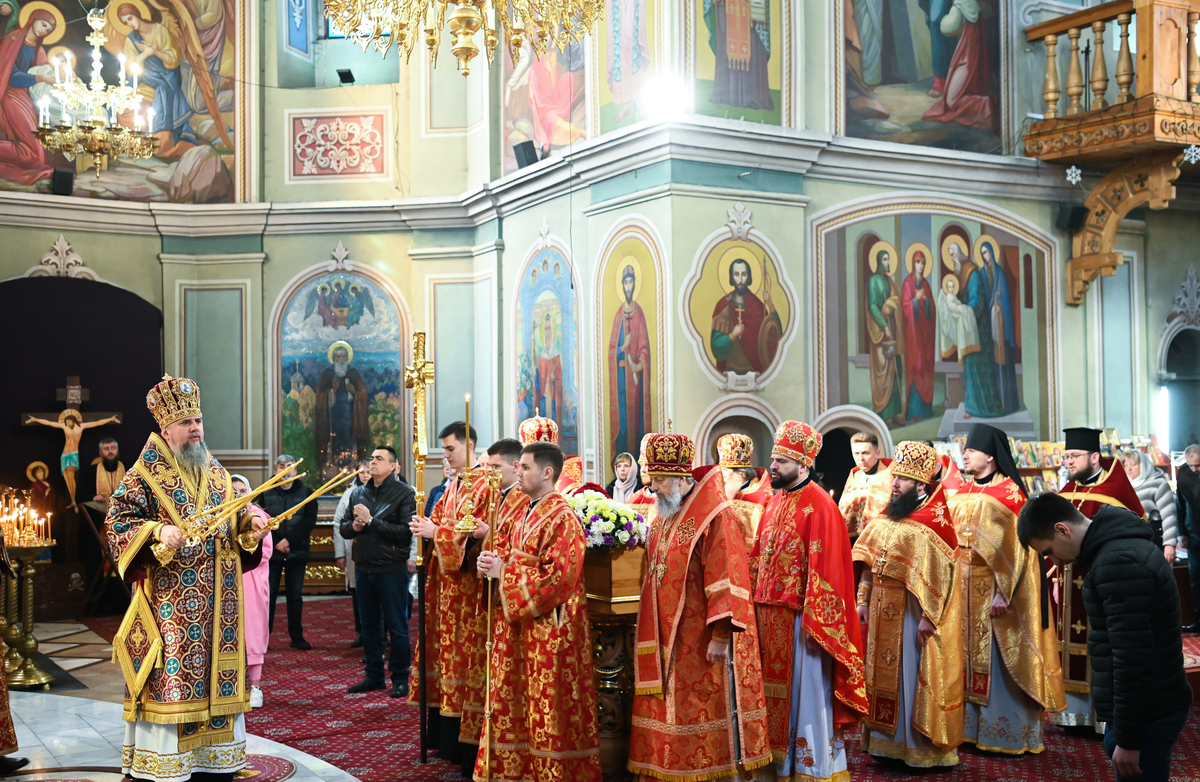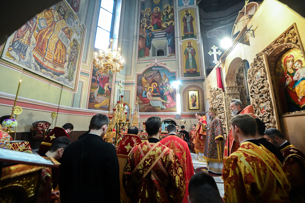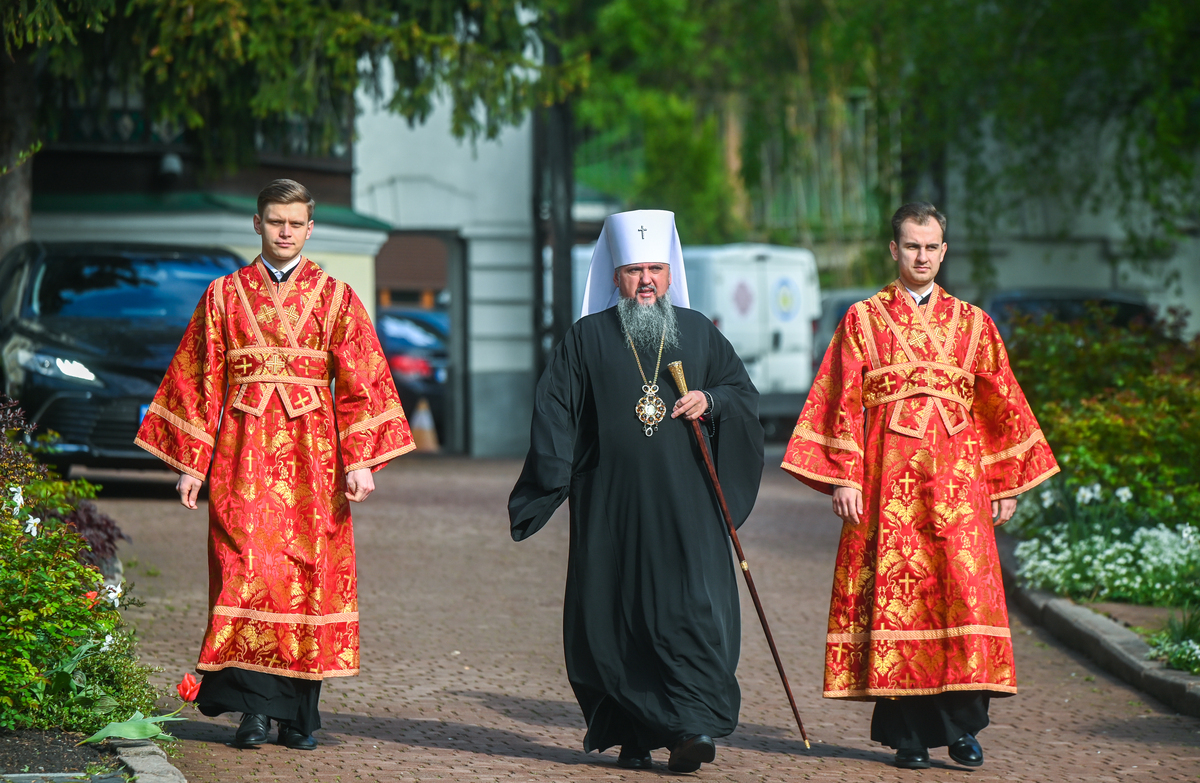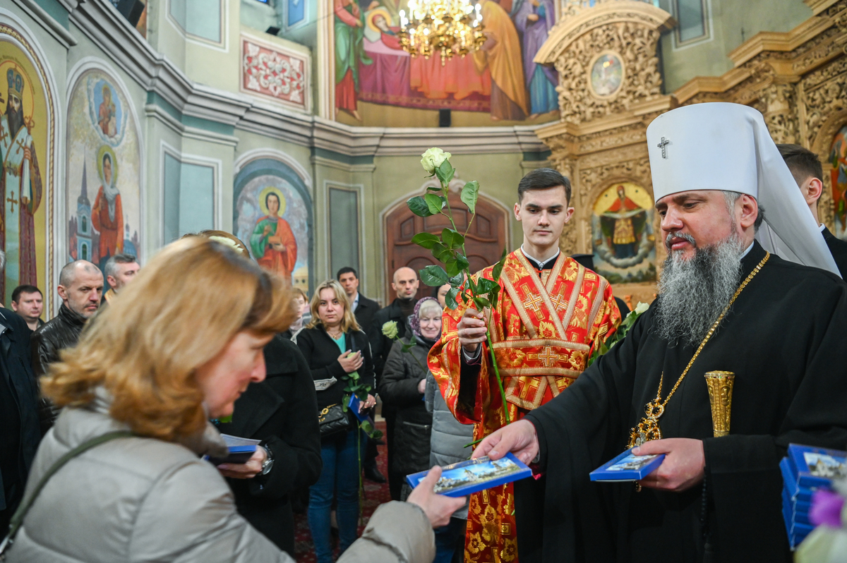 Предстоятелю автокефальної Православної Церкви України співслужили митрополит Білоцерківський Євстратій, архієпископ Луганський і Старобільський Лаврентій, братія обителі, ректор Київської православної богословської академії професор протоієрей Олександр Трофимюк та запрошене духовенство.