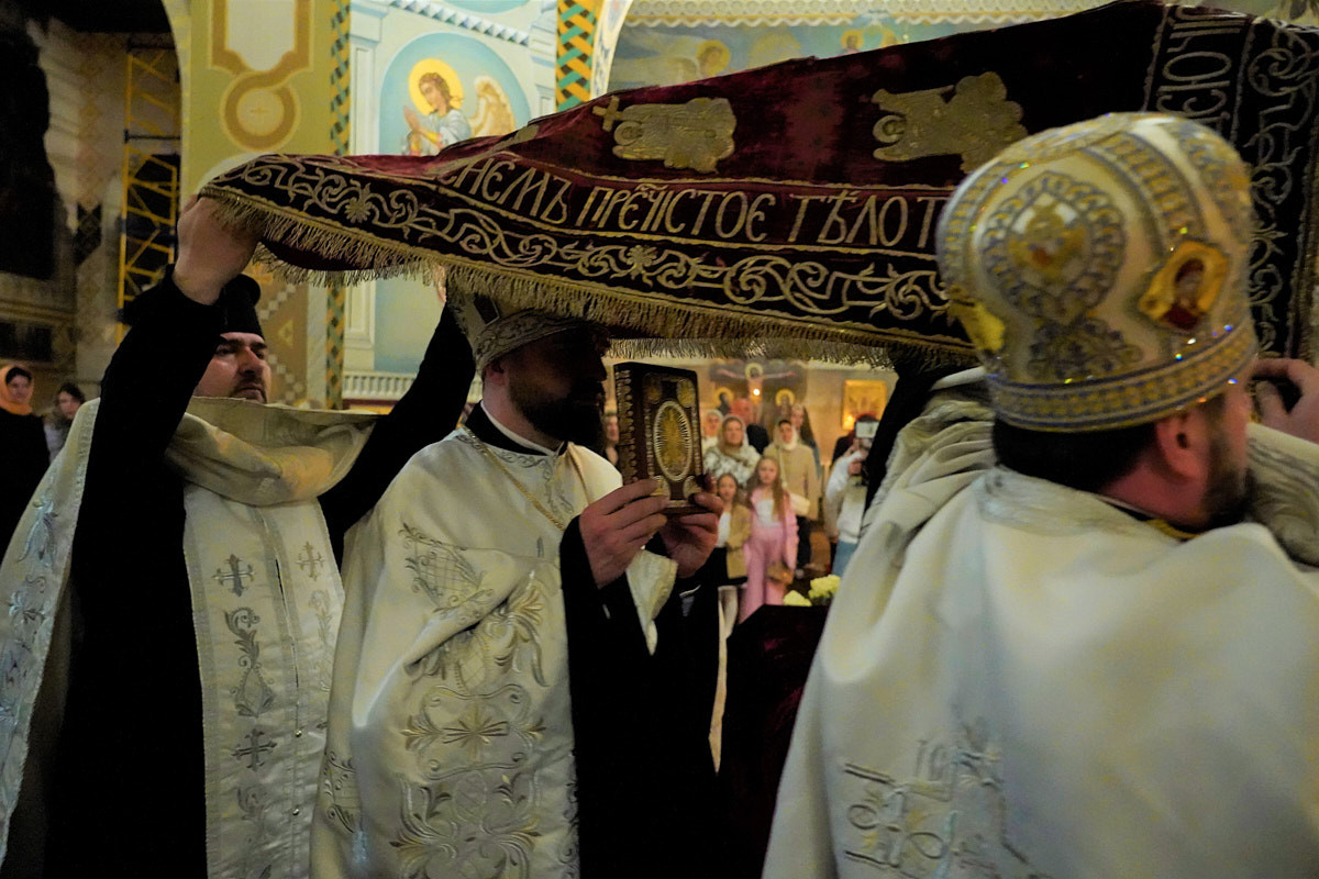 Перед богослужінням, відповідно до церковного статуту та з благословіння настоятеля храму, прочитали книгу Діянь святих апостолів перед плащаницею Господа нашого Ісуса Христа.
