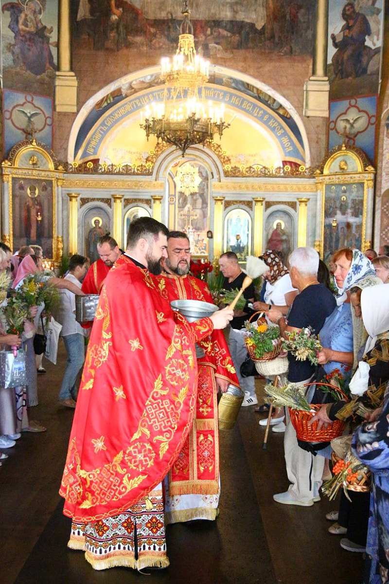 У свято винесення чесних древ животворчого Хреста Господнього та сімох мучеників Маккавеєвих, 1 серпня 2024 року, настоятель Свято-Покровського собору Солом’янського району міста Києва протоієрей Олександр Трофимлюк у співслужінні храмового духовенства – протоієрея Ярослава Романчука, протоієрея Сергія Цьоми, священника Богдана Гайдая та протодиякона Миколи Кучера – звершив Божественну літургію та водосвятний молебень.