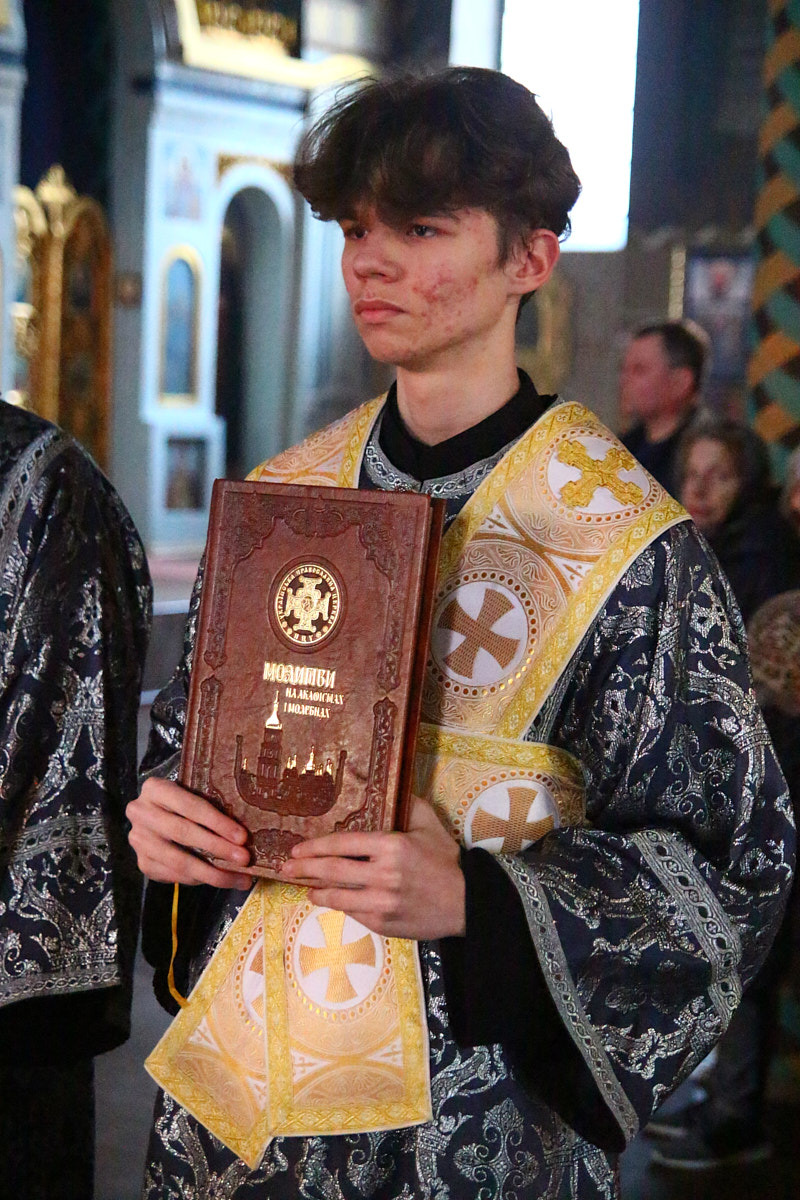 Увечері Хрестопоклонної неділі Великого посту, 23 березня 2025 року, ректор Київської православної богословської академії й настоятель Свято-Покровського собору Солом’янського району міста Києва протоієрей Олександр Трофимлюк у співслужінні зі священником Богданом Гайдаєм звершив вечірню з чином пасії.