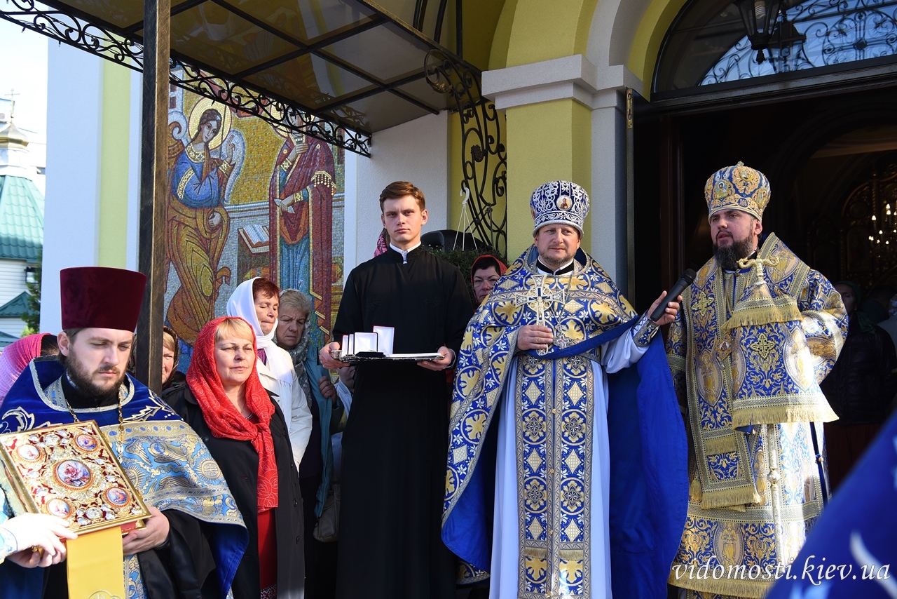 По завершенні хресної ходи митрополит Епіфаній освятив ікону-мозаїку Благовіщення Пресвятої Богородиці на фасаді храму, яка викладена із смальти.