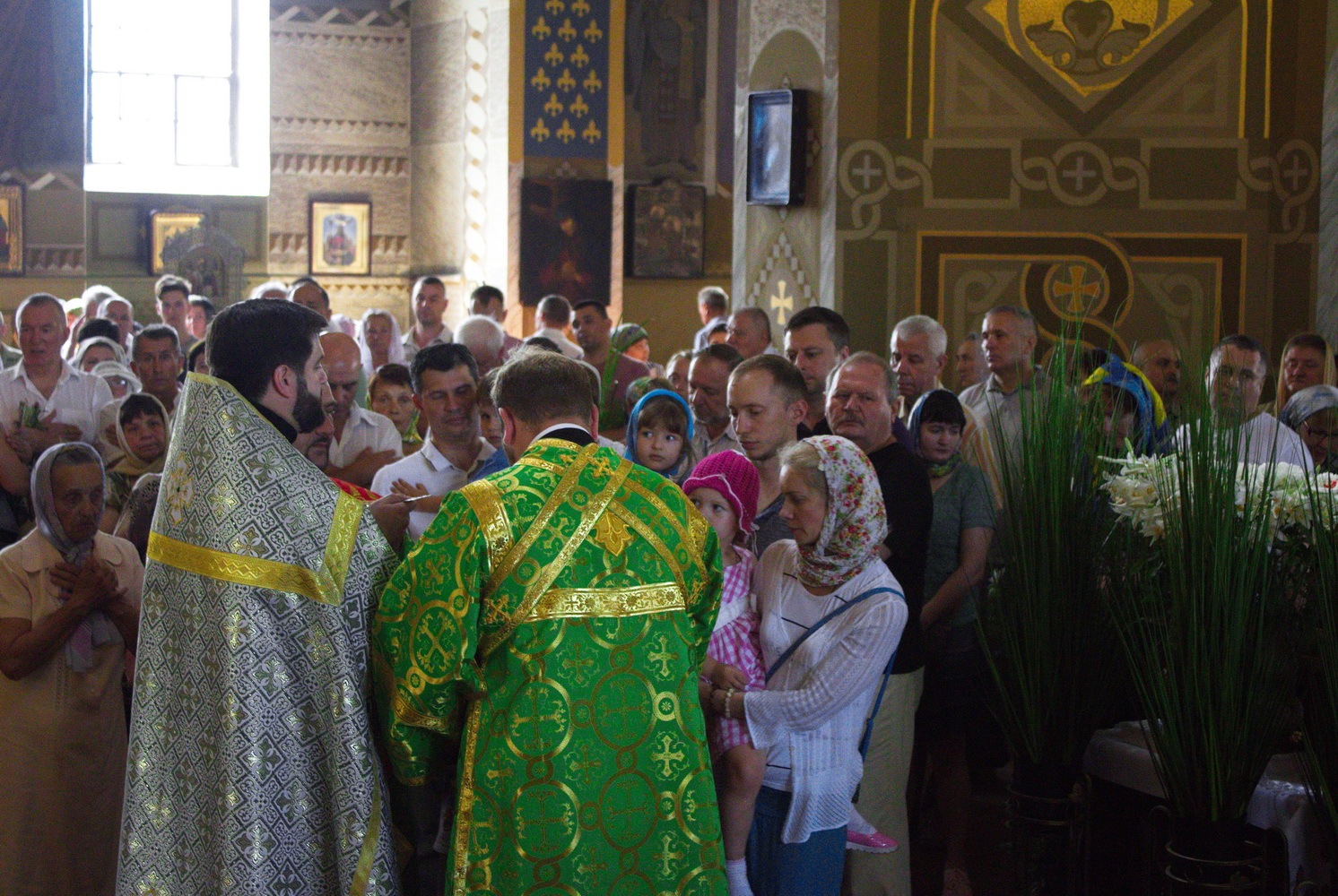 У такій самій спільності очікуваної радості зібралася на сьогоднішнє торжество солом’янська парафія. Після прочитання колінопреклонних молитов святителя Василя Великого, які становили головну особливість сьогоднішнього богослужіння, настоятель храму протоієрей Олександр Трофимлюк привітав усіх зі святом і побажав, щоб кожна спільна зустріч на молитві в Покровському соборі була повторенням події у Сіонській горниці, з якої кожен понесе благодать Божу «до всіх народів, хрестячи їх в Ім’я Отця, і Сина, і Святого Духа» (Мф. 28: 19).