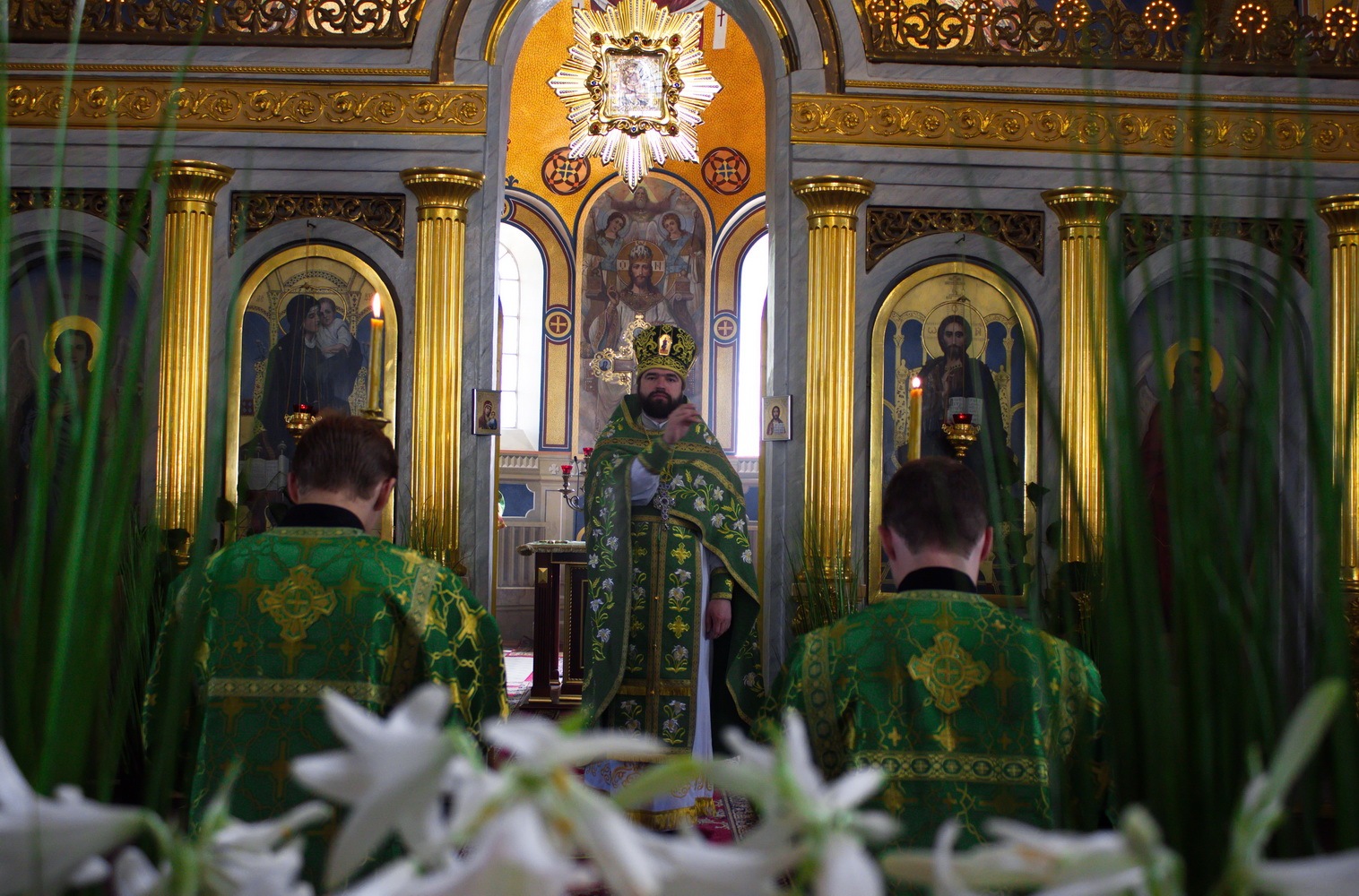 Настоятель собору привітав свою паству зі святом Святої Трійці чи П’ятидесятниці та звернувся до віруючих зі словом проповіді. Протоієрей Олександр зазначив, що «на п’ятдесятий день після свята Пасхи виповнюється обіцянка Христа – на святих апостолів у вигляді вогненних язиків сходить Святий Дух. Ця подія стала поворотним пунктом у світовій історії, адже з нею пов’язане заснування Церкви Христової та утвердження християнської віри. У сьогоднішньому святі звершилося домобудівництво Боже: плоди спасительної Христової жертви й триденного воскресіння стали доступними нам через дію благодаті Святого Духа. У цій троїчній дії усіх Осіб Пресвятої Тройці являється нам Істинний Бог, Який дарує нам причастя Свого Божественного життя у спільності любові.»